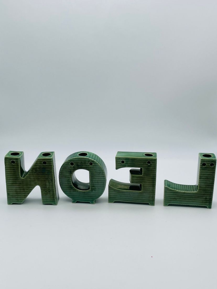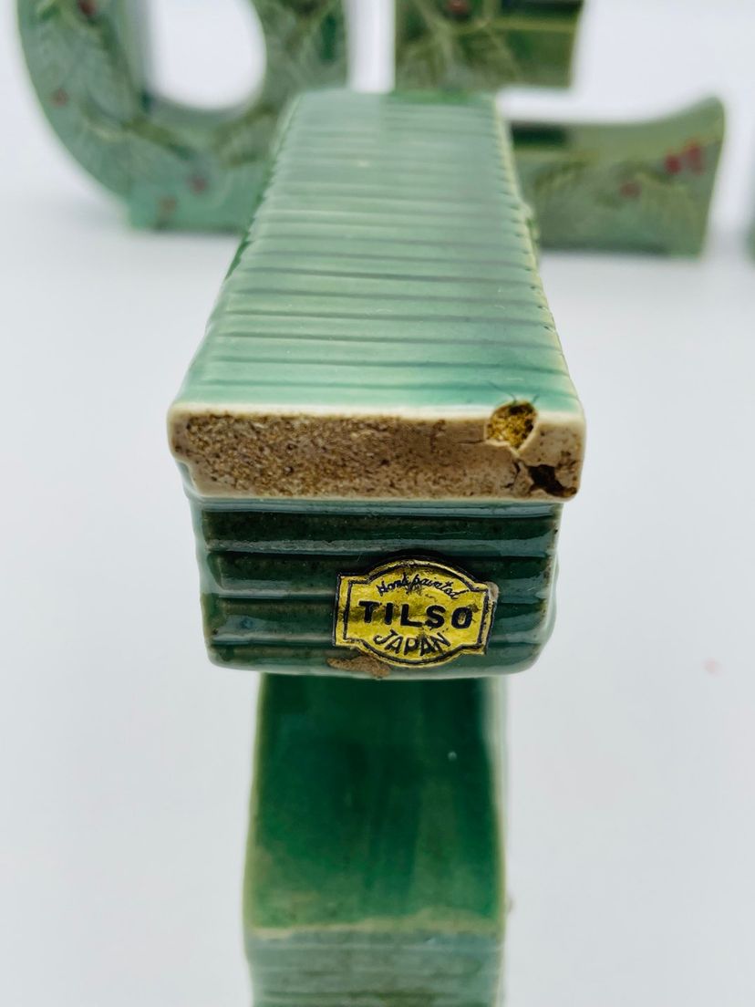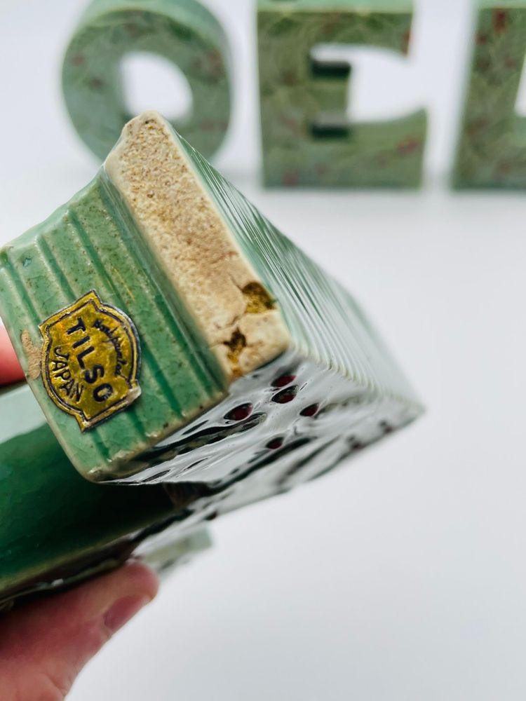Each letter matters approximately 4“ x 4“ Small chip, mainly a glazed chip on the letter N (see photos) Stickers marked TILSO Japan