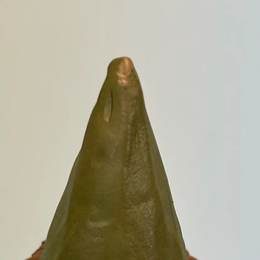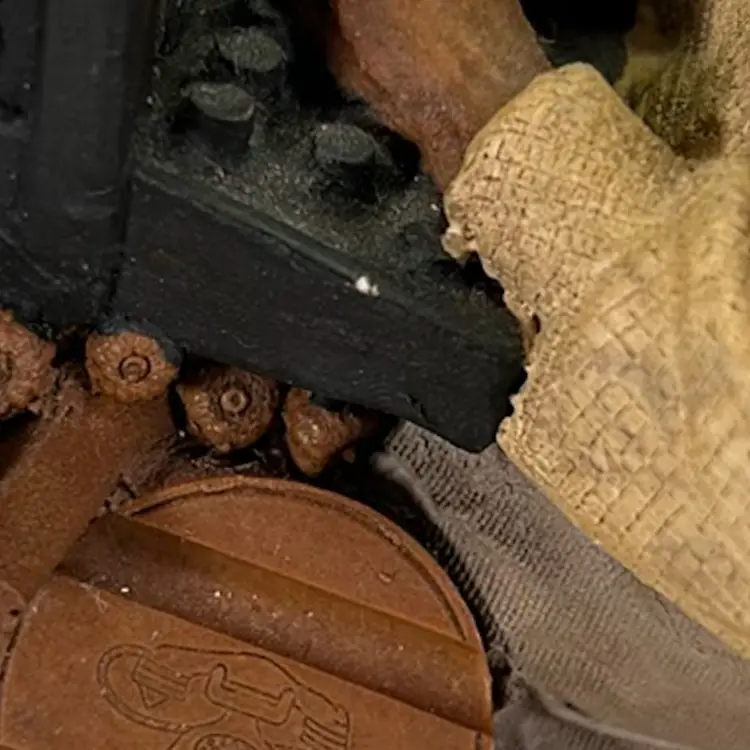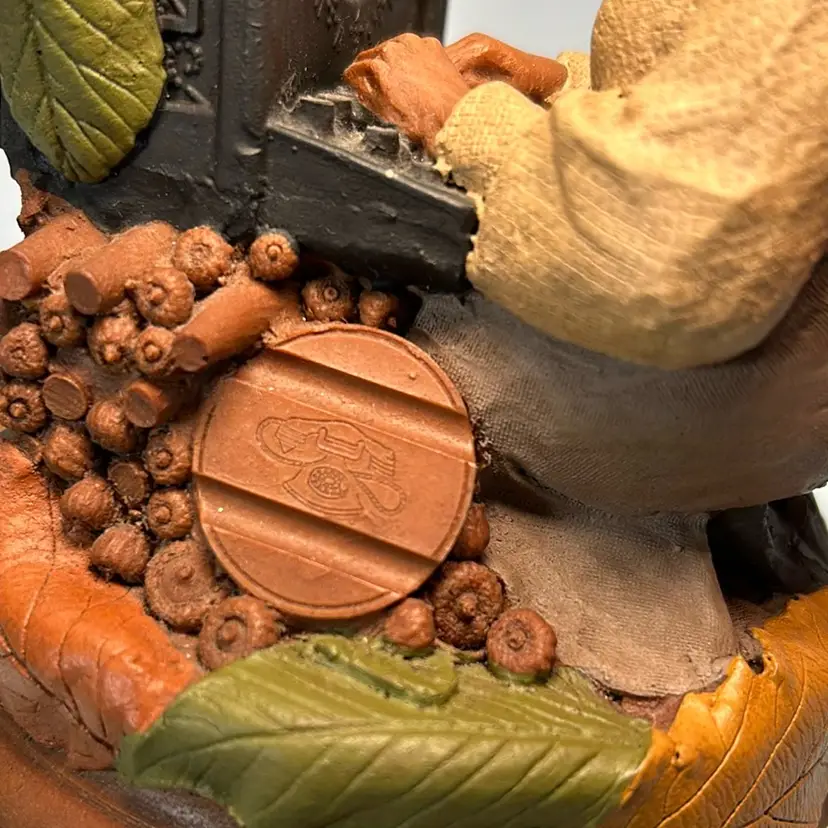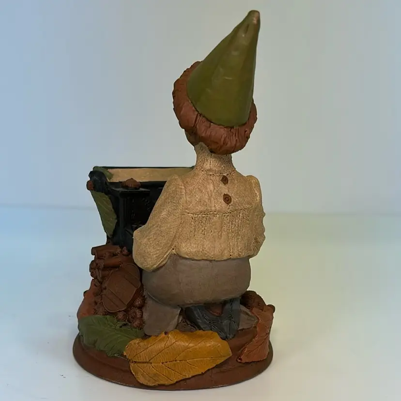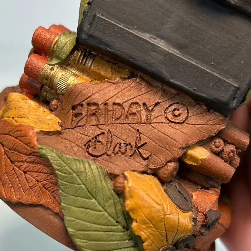 She is 5 3/4” tall and 3 3/4” wide at the base. There is a small paint scuff at the back of her hat. And a small paint chip on the typewriter.