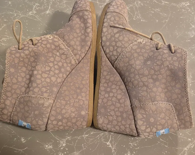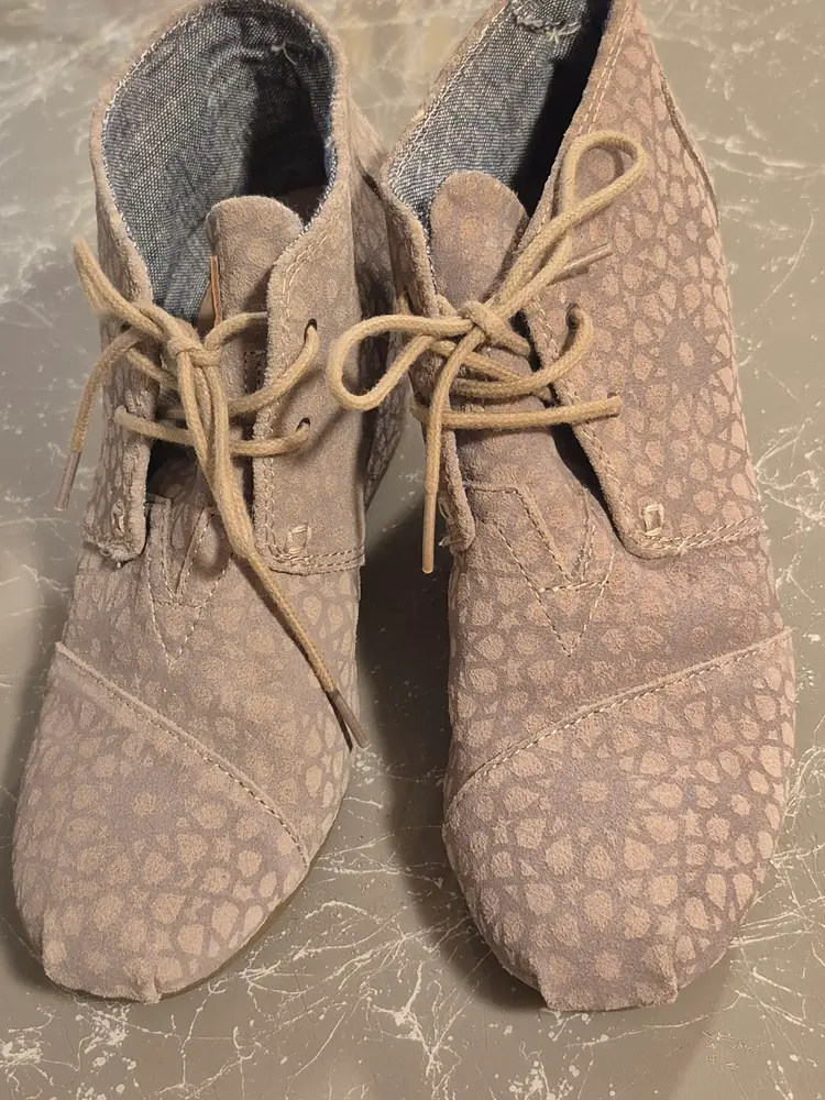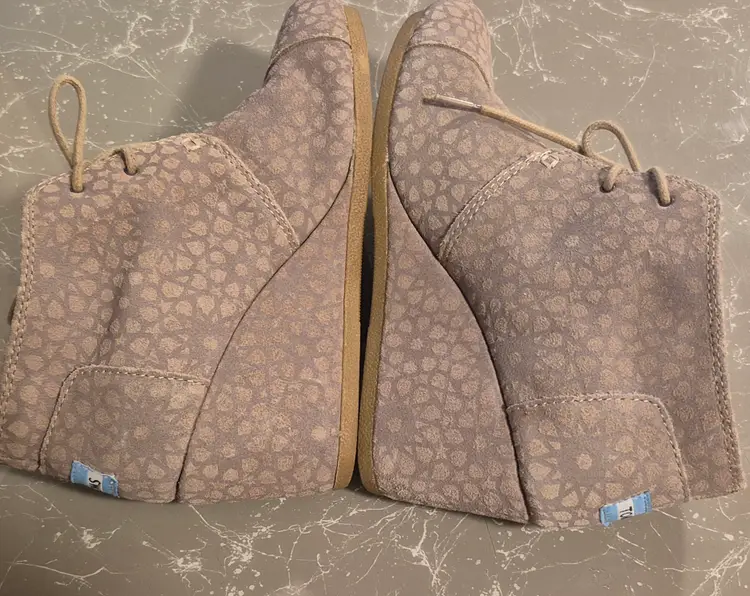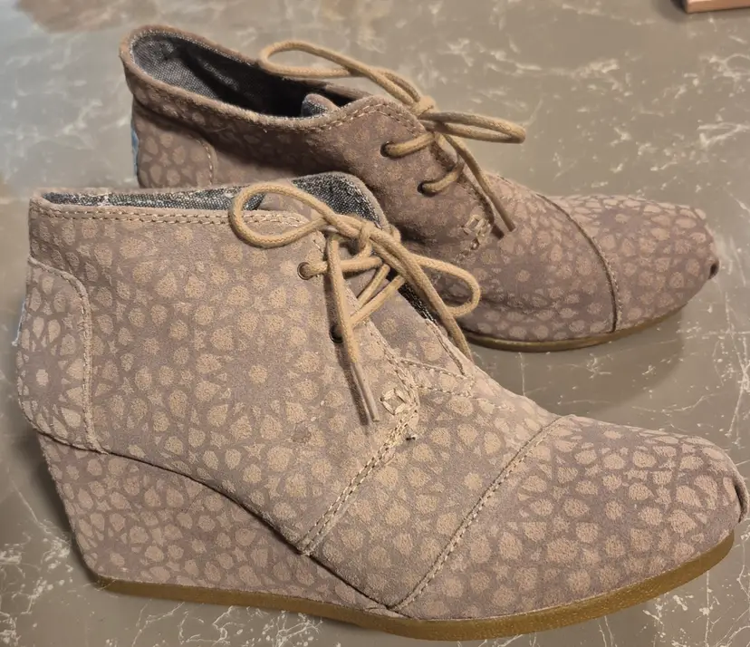 One shoe has some sticker residue from label,see photo. Wedge is 3"