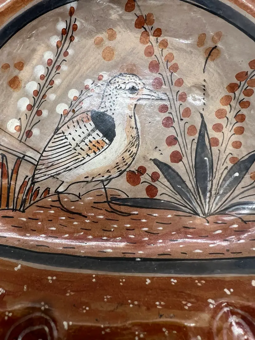 5.5” diameter, sits 1” high. No chips, cracks, or defects. Unsigned. Features a bird in the design.