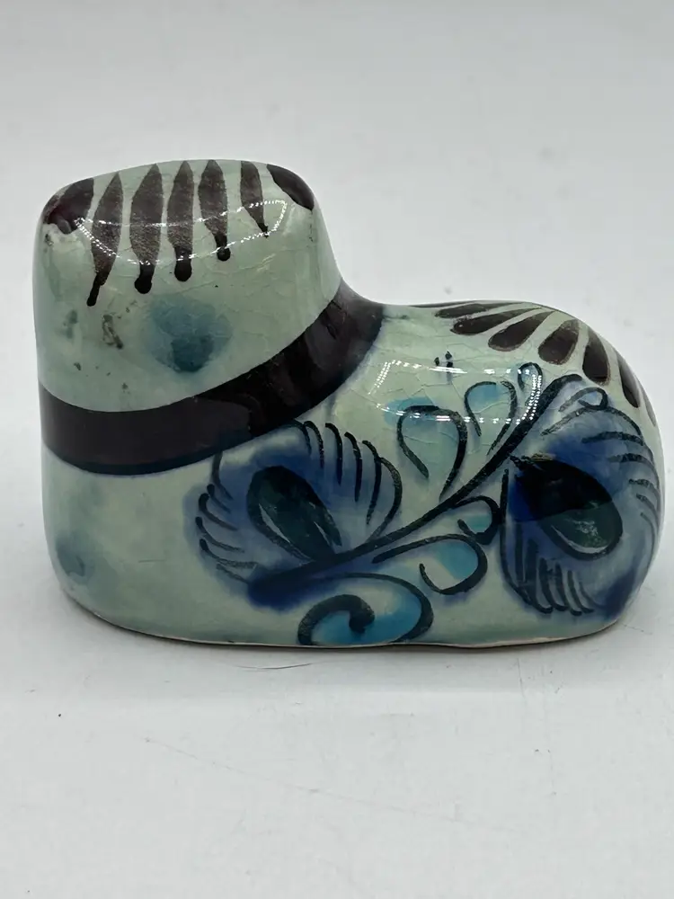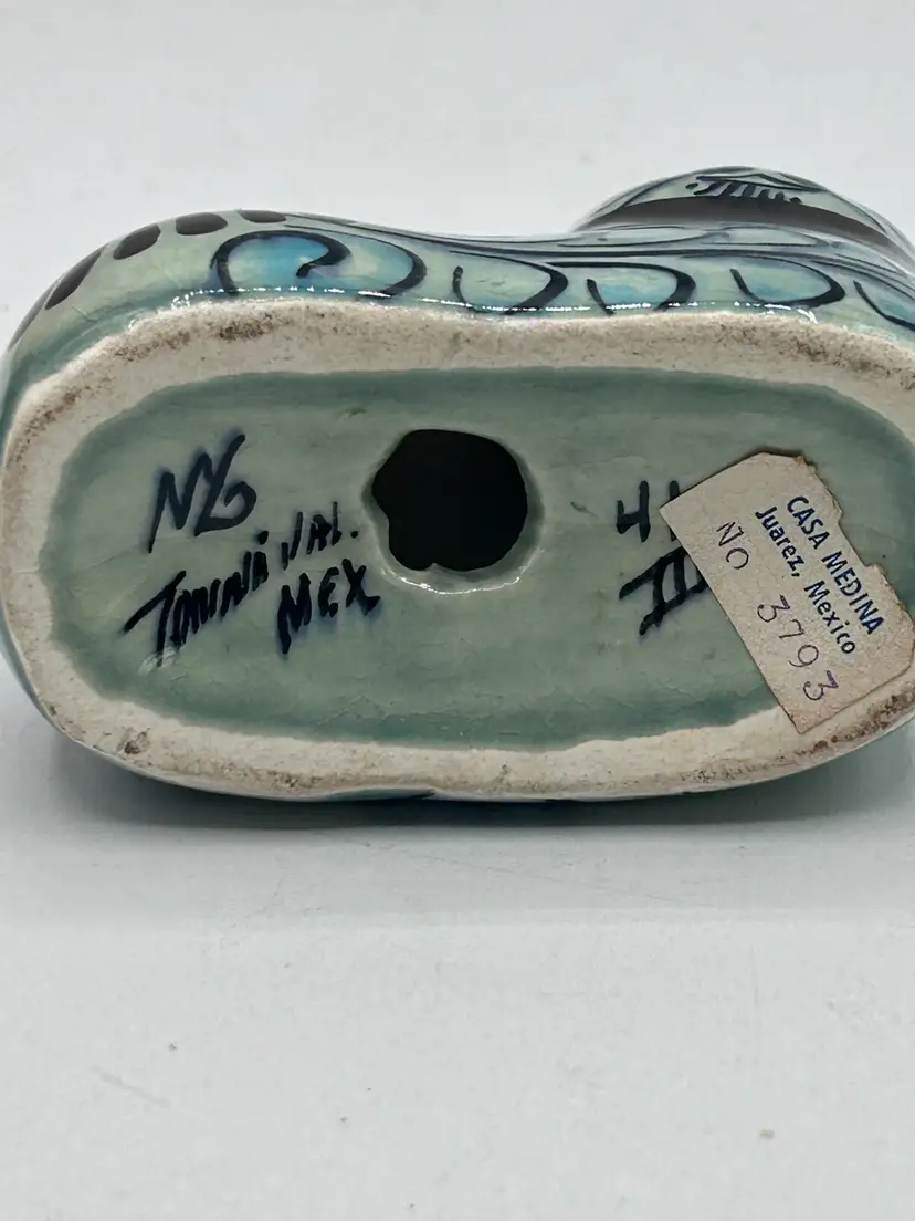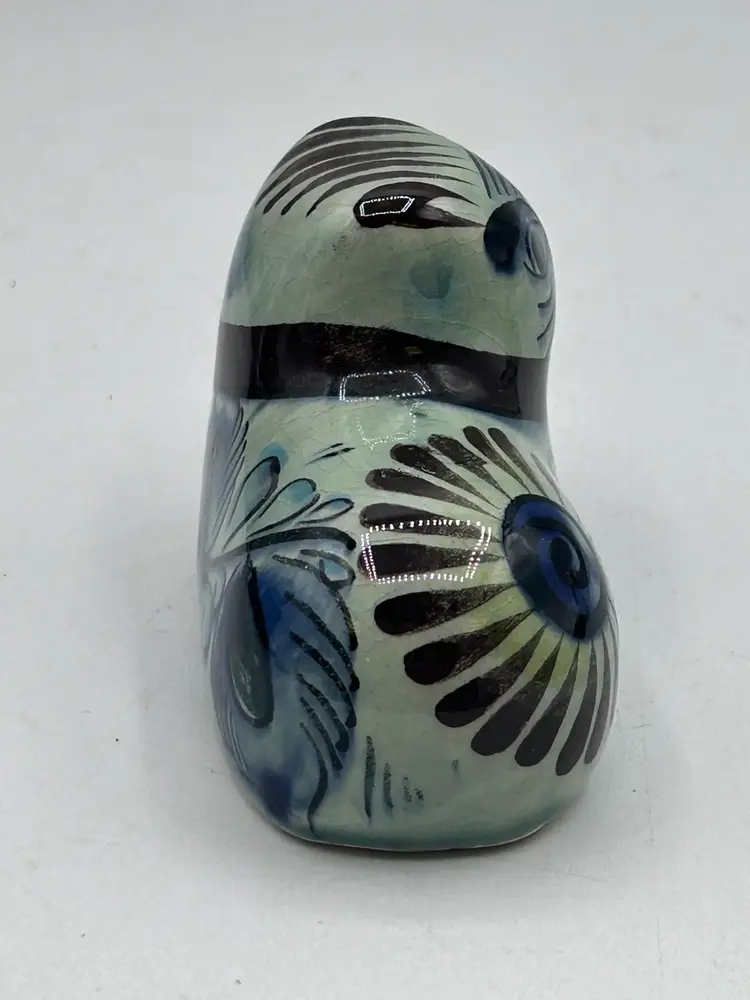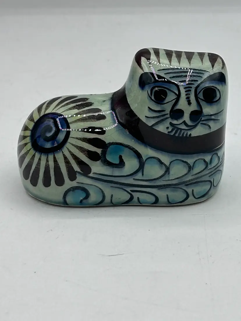 Overall, very good condition showing signs of crazing signed at base Tanala Mexico with original Mexico sticker cat measures 2 inches tall by 3 inches wide.
