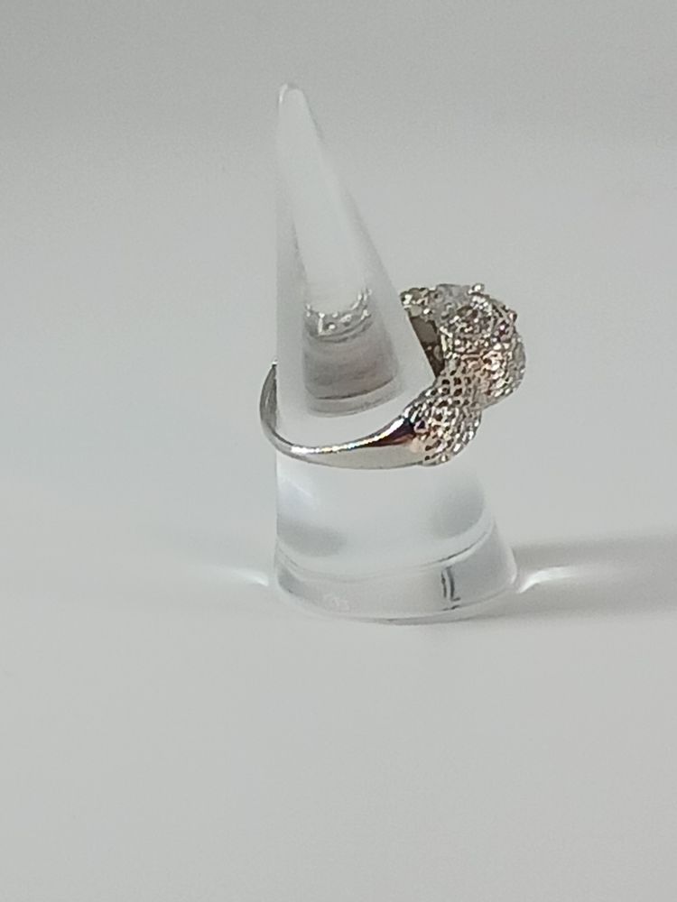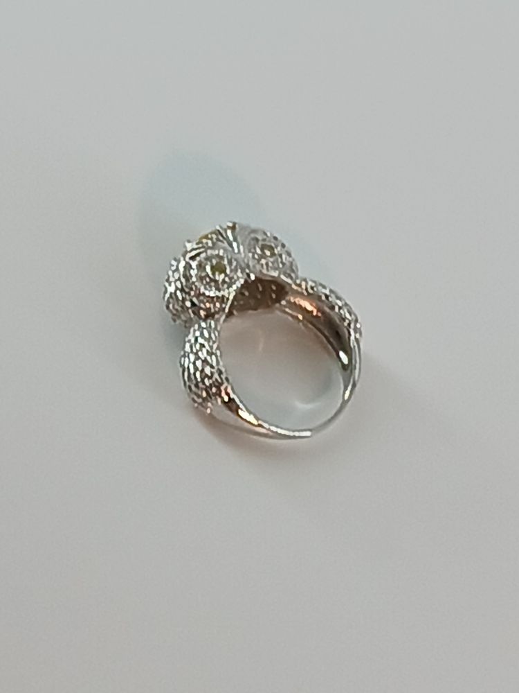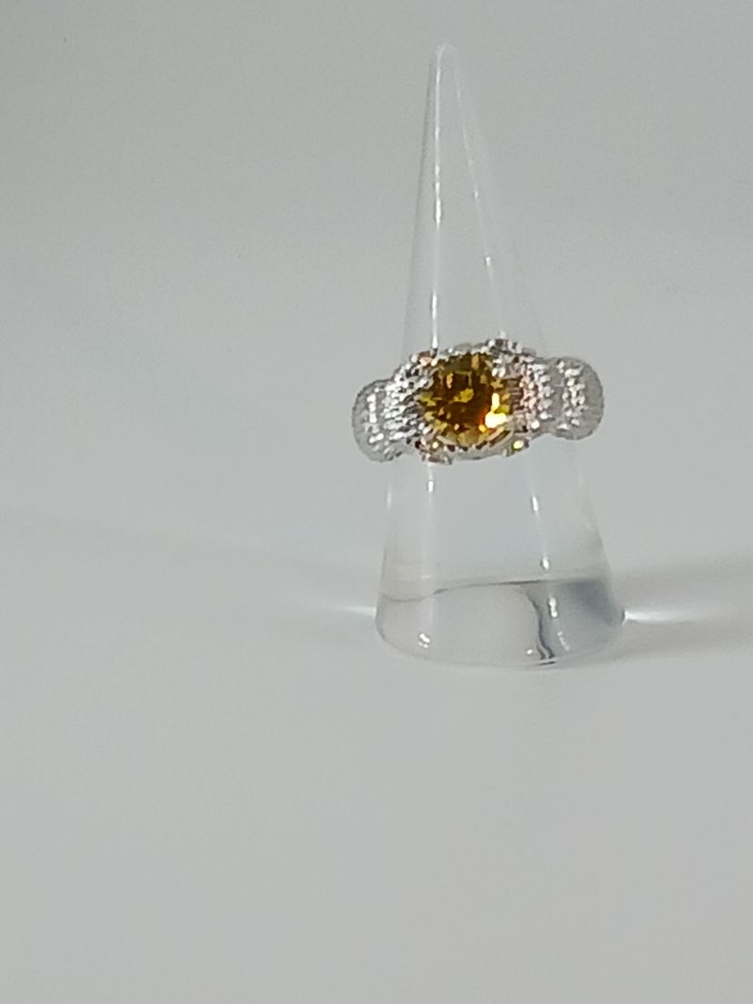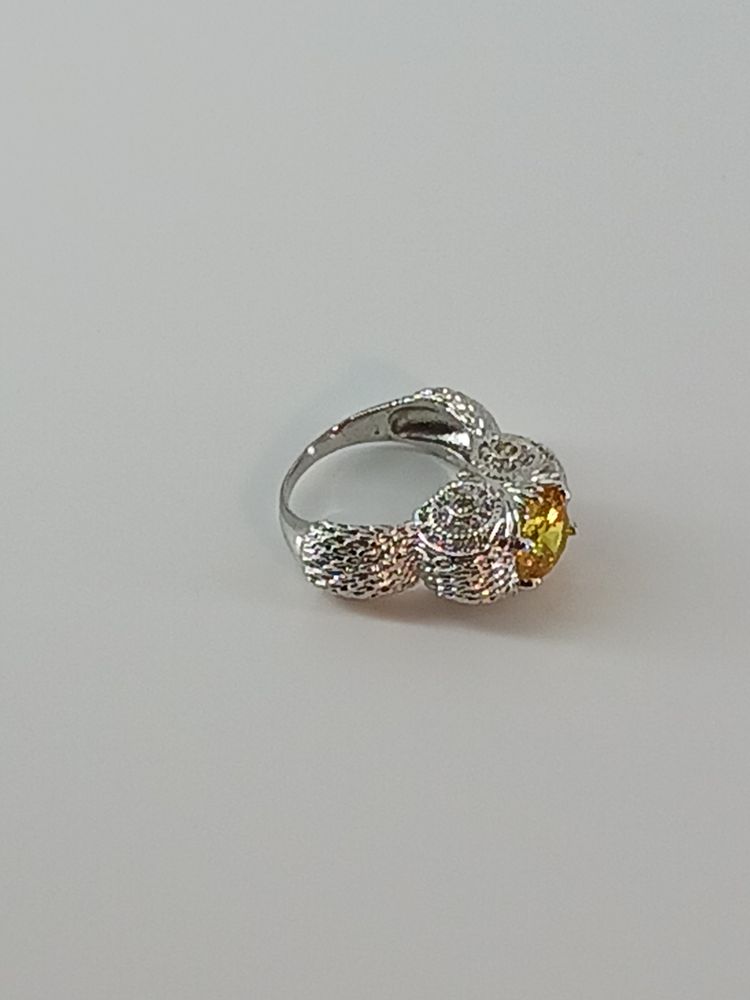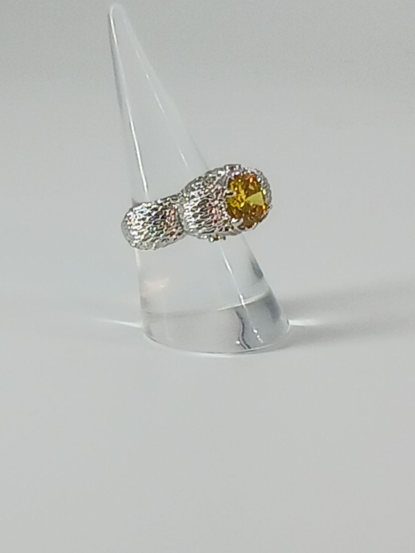 3/8 inch Topaz gemstone has been mounted into a marked 925 Sterling Silver size 8 ring setting that is shape as an Owl with rhinestone eyes.