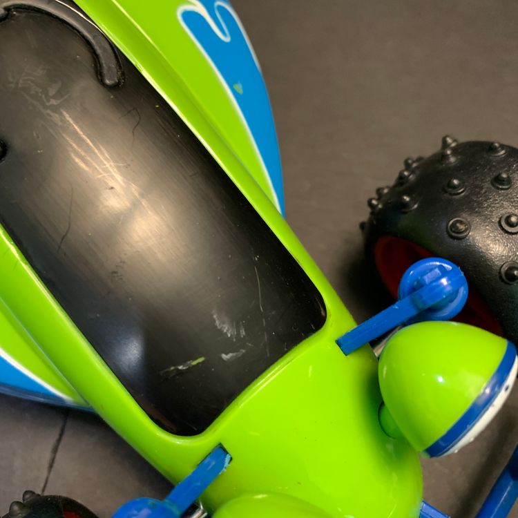 This was my oldest son's toy. We bought it for him just after the movie was released. It was played with, so it does show signs of wear. Please see all photos. Measures 8 inches across, 5 1/2 inches wide and 4 3/4 inches tall. Weighs 9 ounces. If the actual postage ends up being less than what you paid, you will be refunded for anything over one dollar.