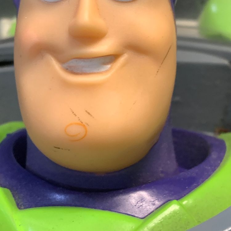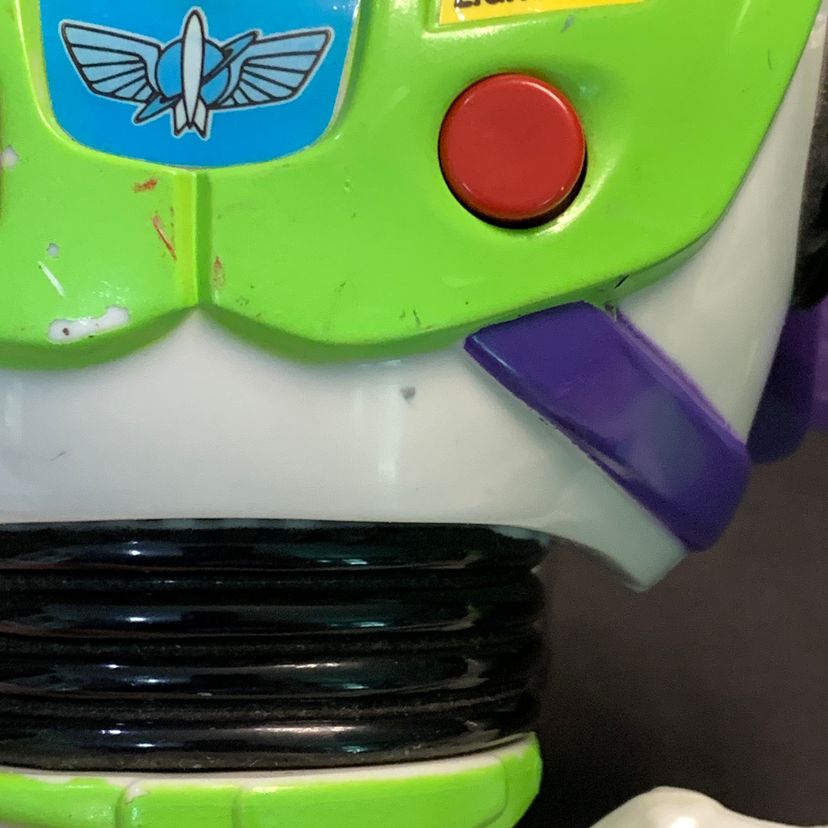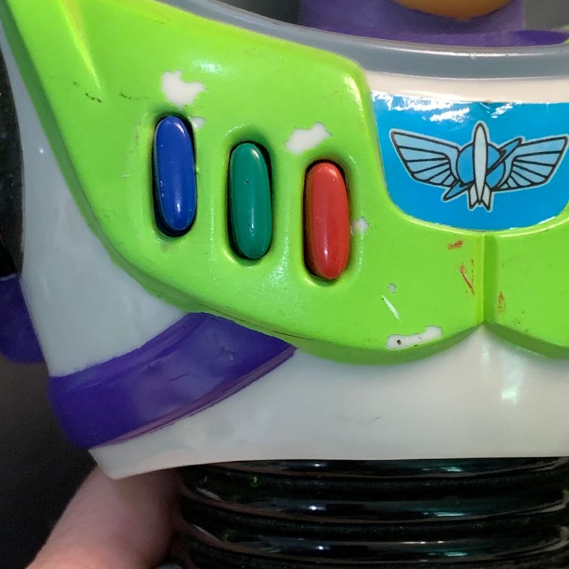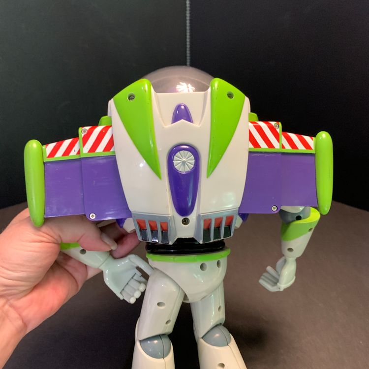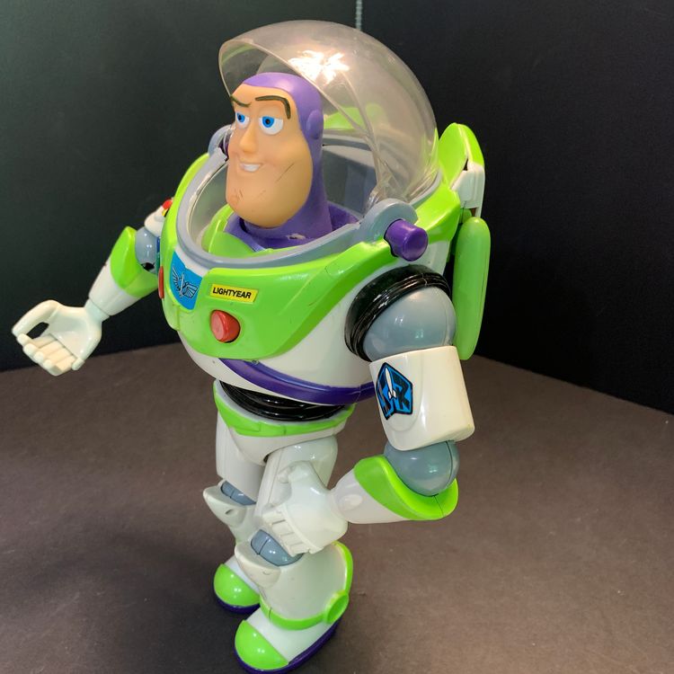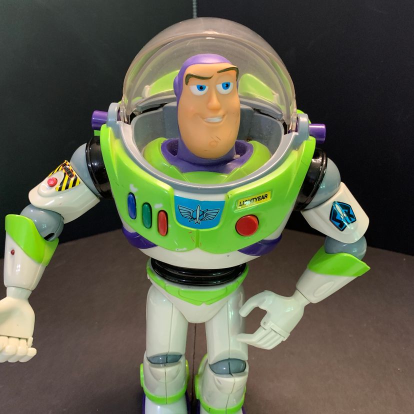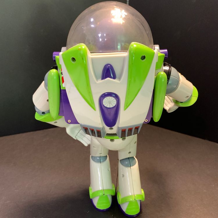 This was my oldest son's toy. We bought it for him just after the movie was released. It was played with, so it does show signs of wear. Please see all photos. It does work except for the round red button. Measures 9 1/2 inches wide and 11 1/2 inches tall. Weighs 27 ounces. If the actual postage ends up being less than what you paid, you will be refunded for anything over one dollar.
