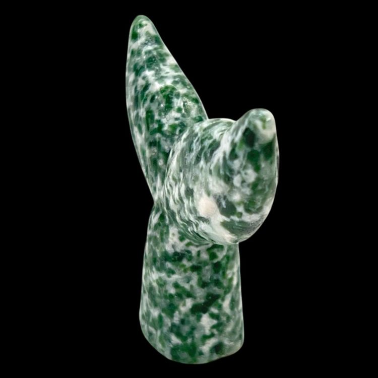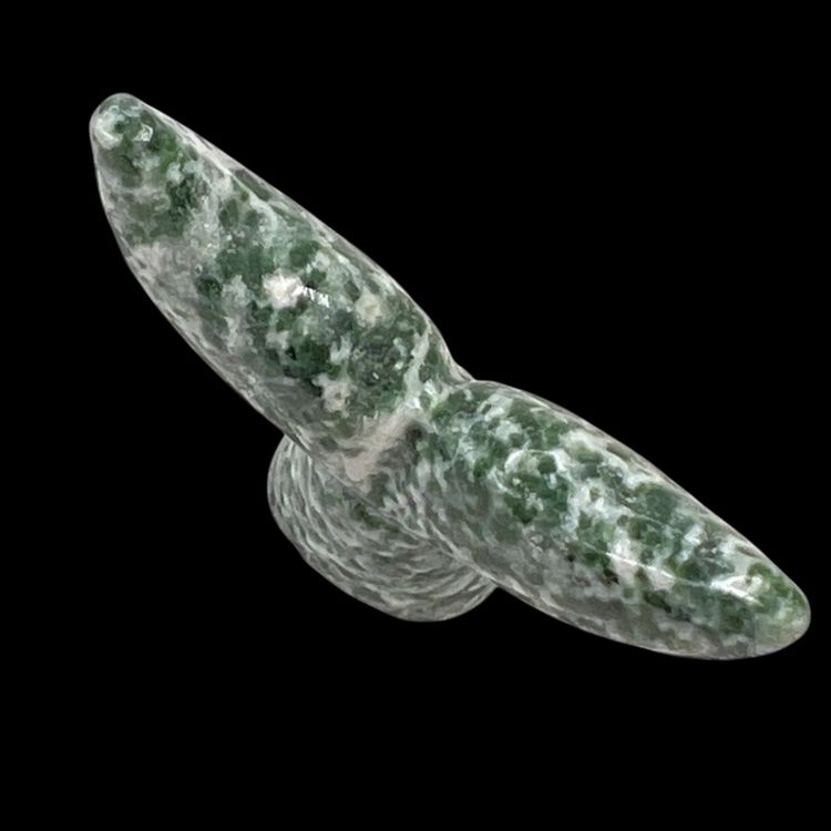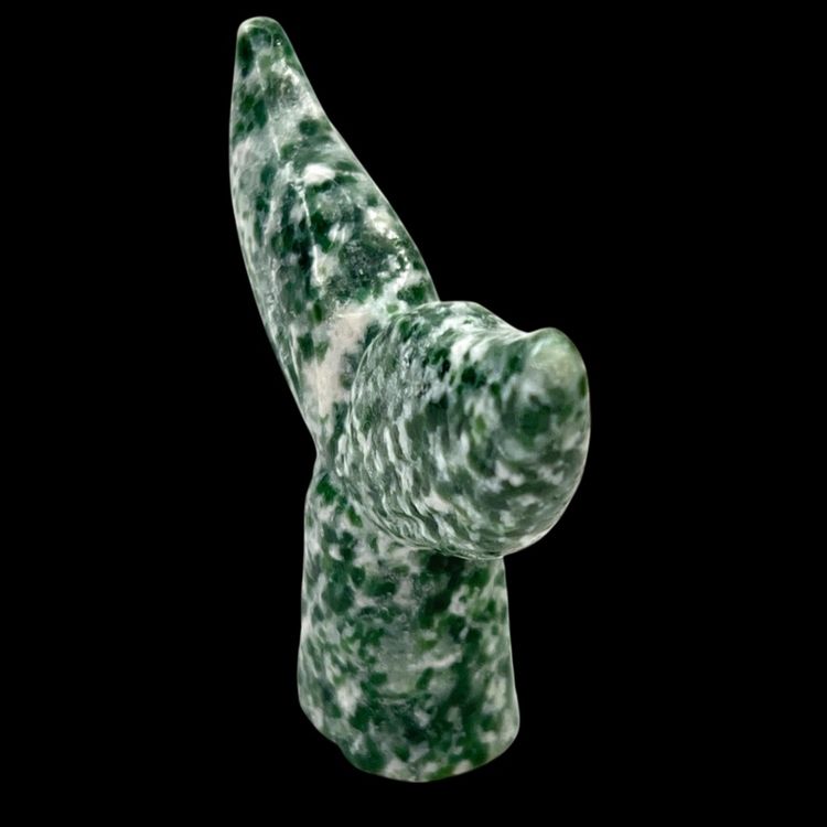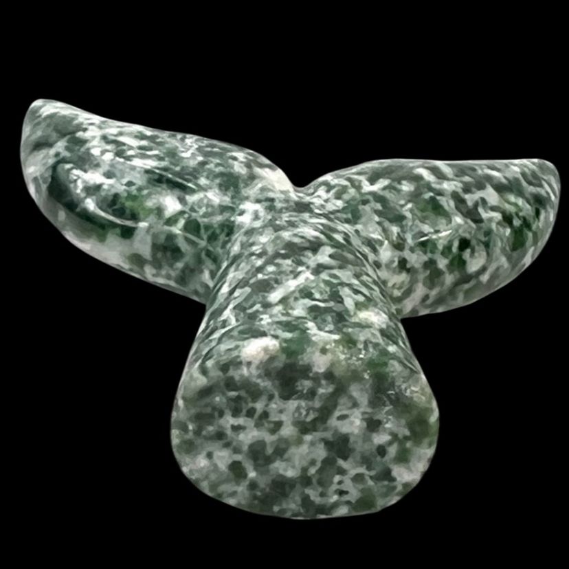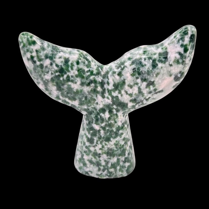 Tree Agate Green & White Stone. Carved into a Mermaid ๐งโโ๏ธ Tail Or Whale ๐ Fluke. Tree Agate is good for grounding and nature-connection. The green dendrites are similar to tree branches or a forest connecting on an opaque white background. 2โ H x 2โ W x 1/2โ D Weighs 6 ounces. No condition issues.