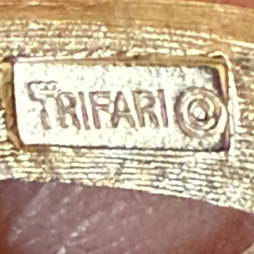 Knot Infinity White Enamel TRIFARI CROWN Vintage Gold Brooch. High Comps $$$