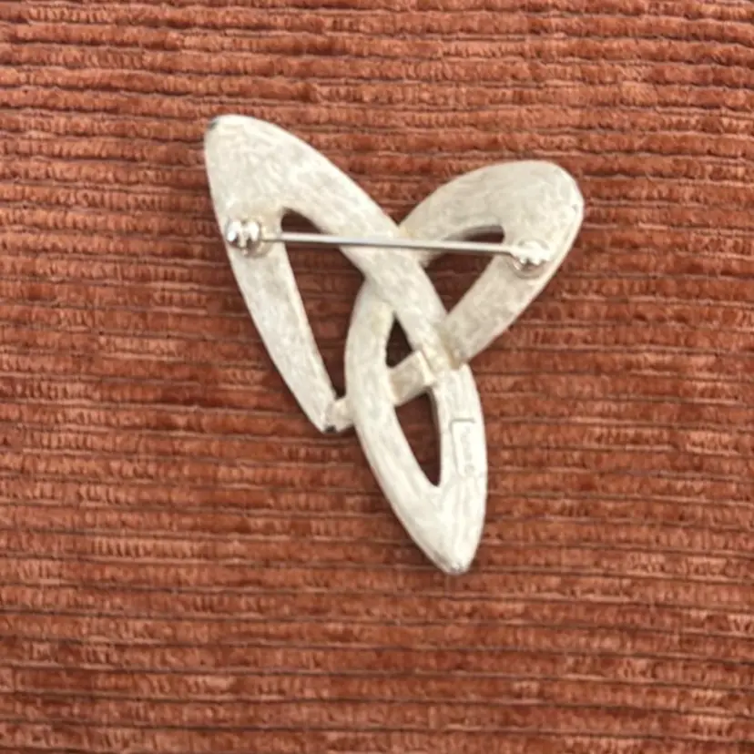 TRIFARI CROWN Vintage Knot Infinity White Enamel Vintage Gold Brooch