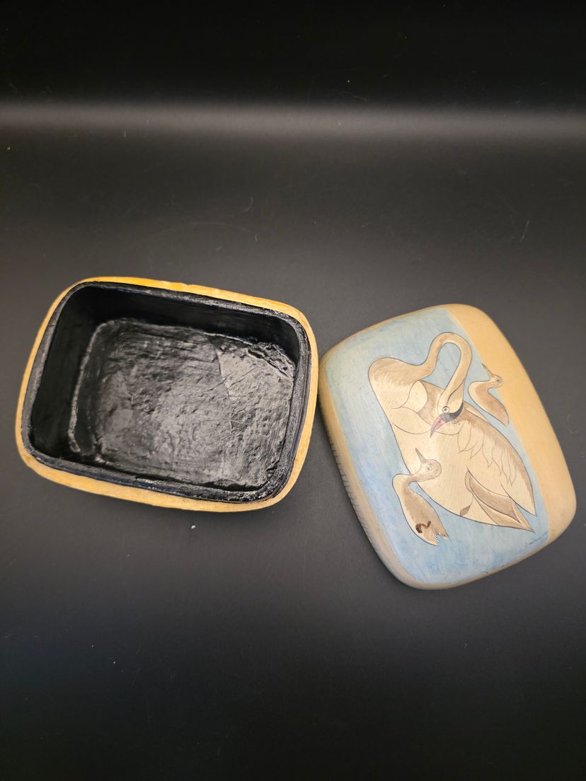 These trinket boxes are super cute! These boxes have some yellowing. No chips or cracks. Selling separately.