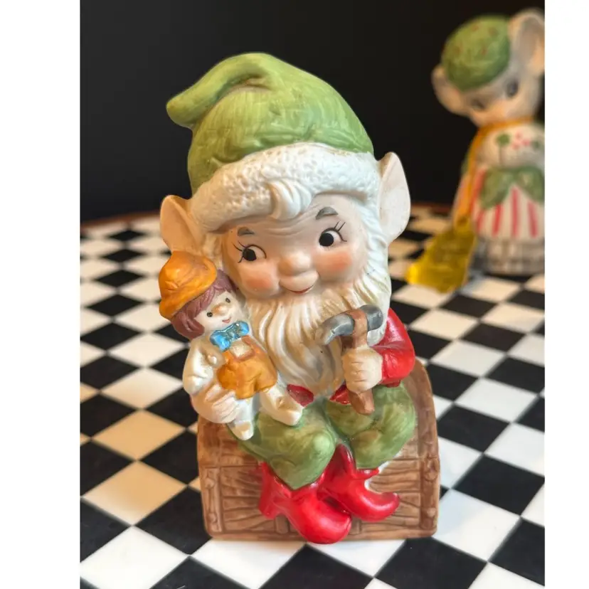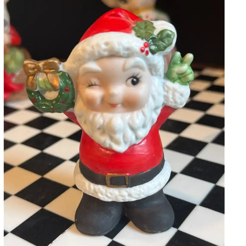 Awesome vintage ceramic Christmas decor! Peace loving Santa is dated 1979 and measures 3” tall. Mouse “CritterBell” still has her tag and measures about 4 inches tall. And Santa’s Elf measures about 4 inches tall. All in perfect vintage condition and ready for Christmas display!