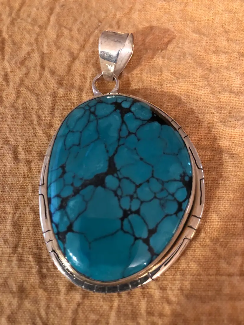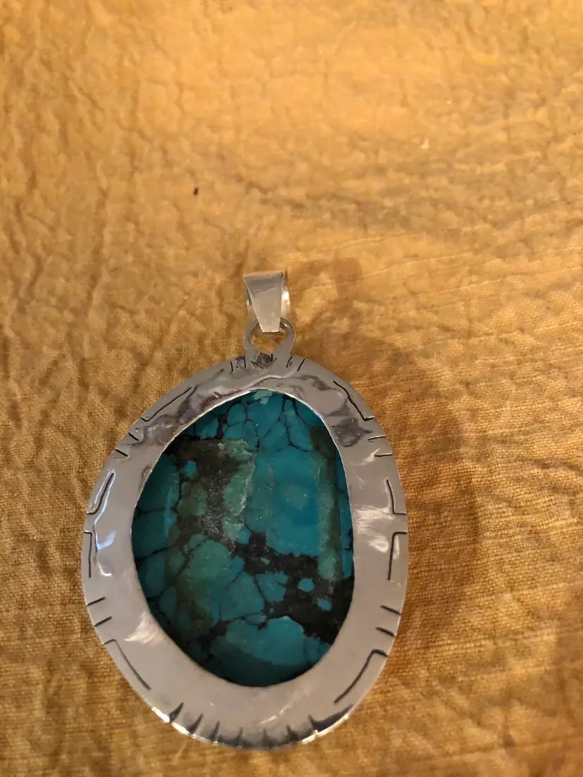 Large turquoise and silver pendant on a secure bale. 1 1/2 X 1 1/4 inches