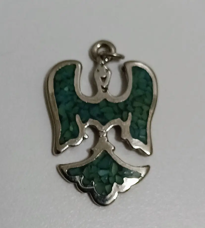 Inlaid Turquoise Phoenix Pendant; Silver stone; 1" L x .75" W