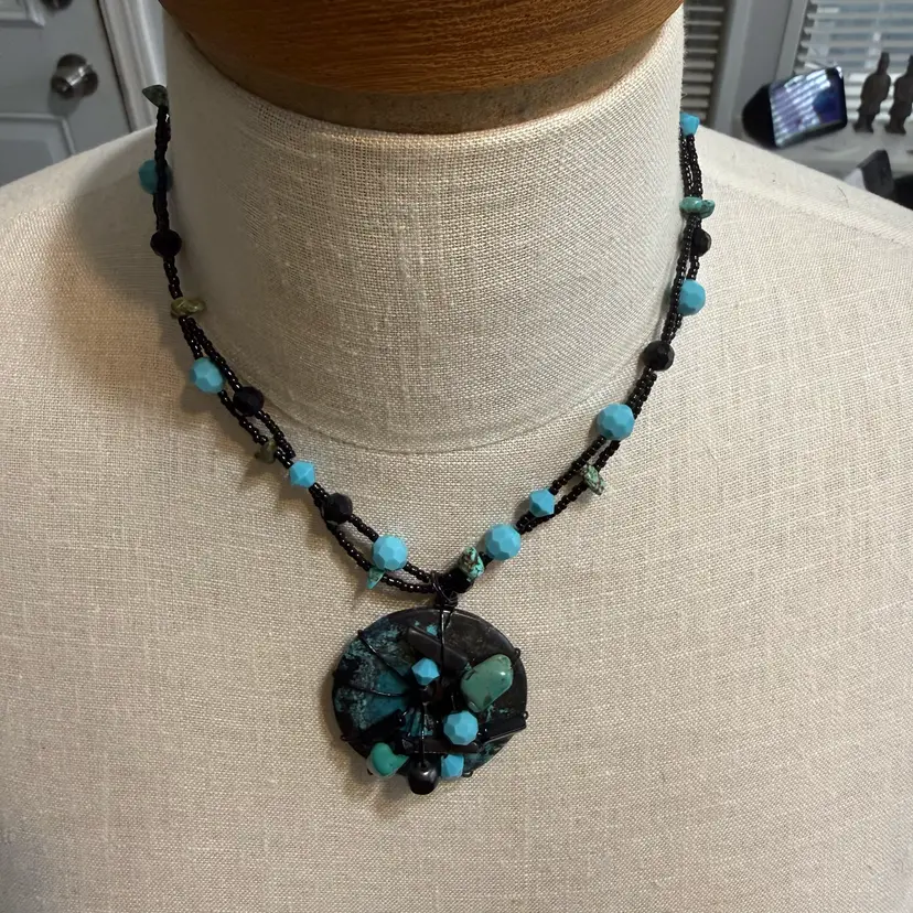 Turquoise Toned Necklace & Earrings Pre-owned