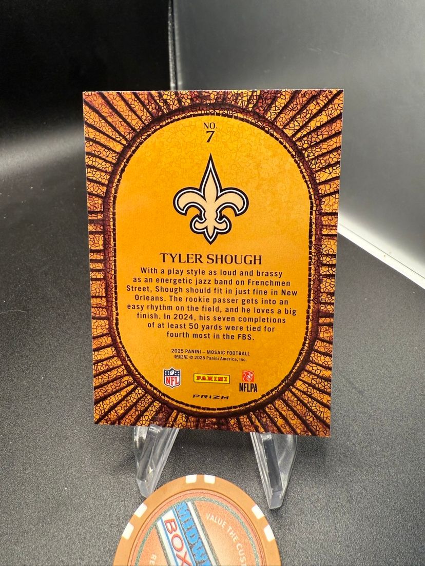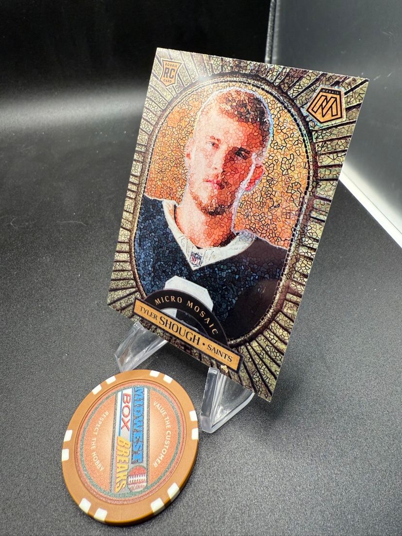This is a Tyler Shough Micro Mosaic case hit RC from 2025 Mosaic. Just a couple small blemishes on back. Priced accordingly.