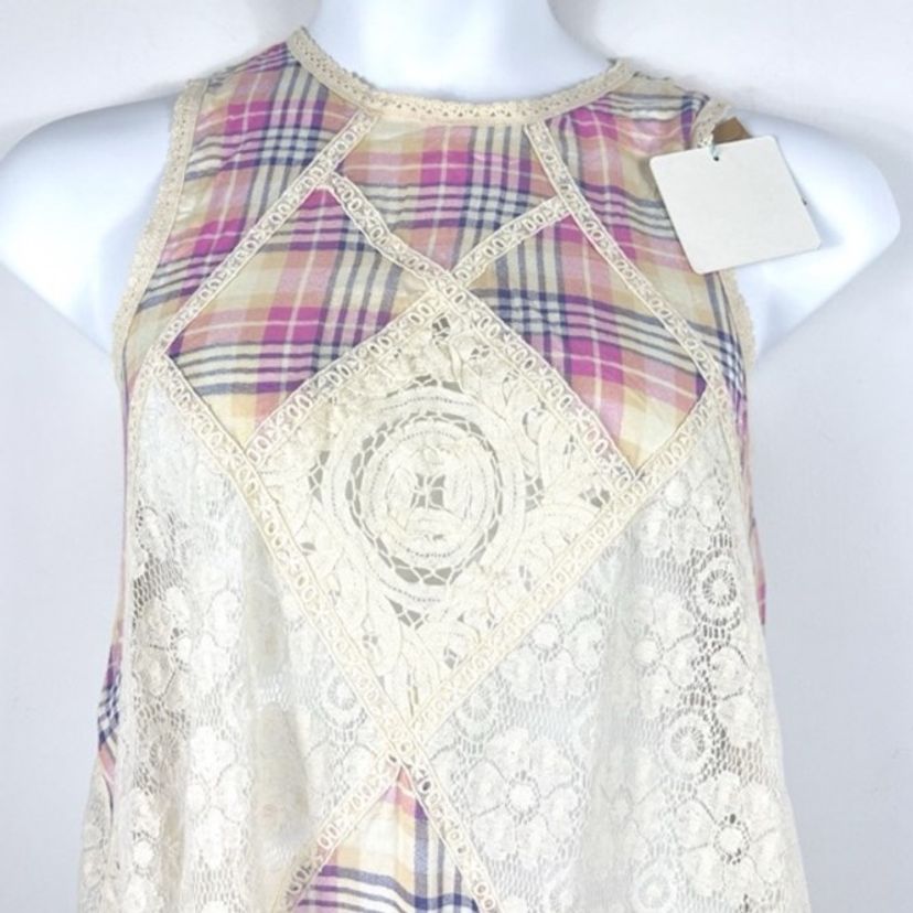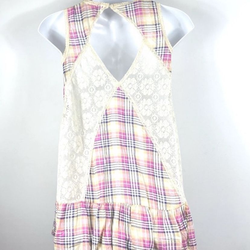 Umgee Lace Mini Dress Womens Size Medium Plaid Floral Swing Cottagecore Prairie