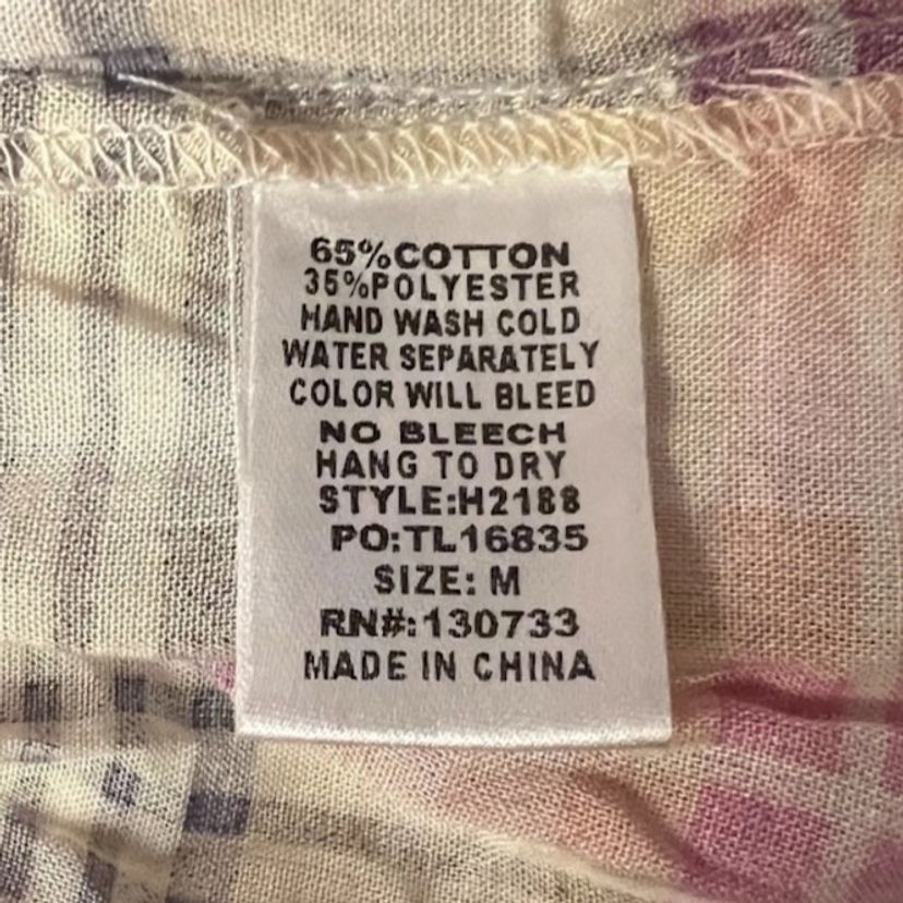 •Sheer floral Lace with pink plaid pattern, one button closure at neck