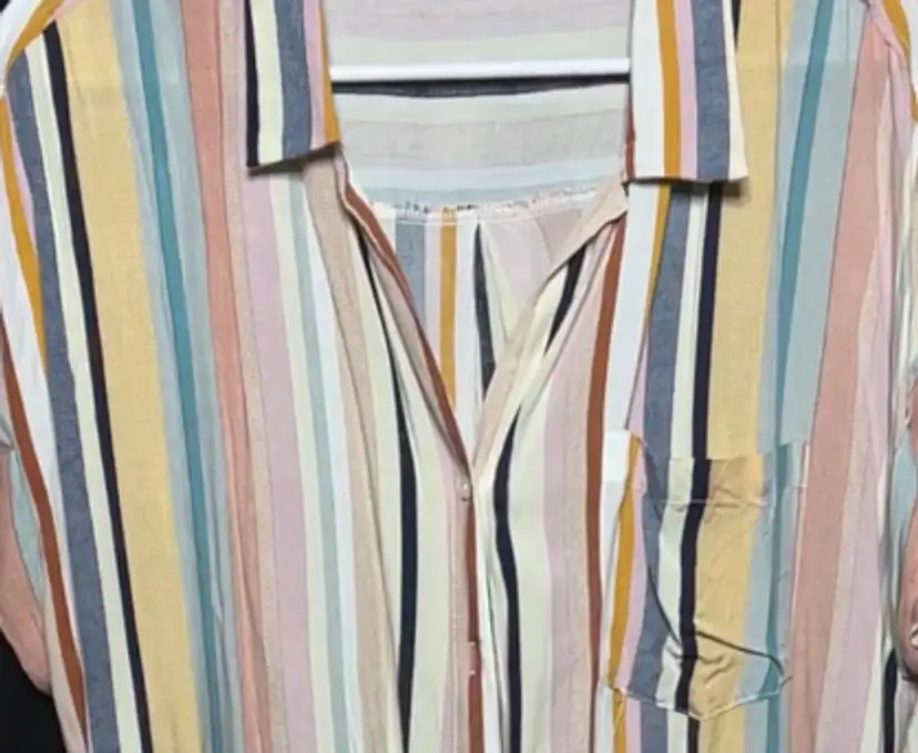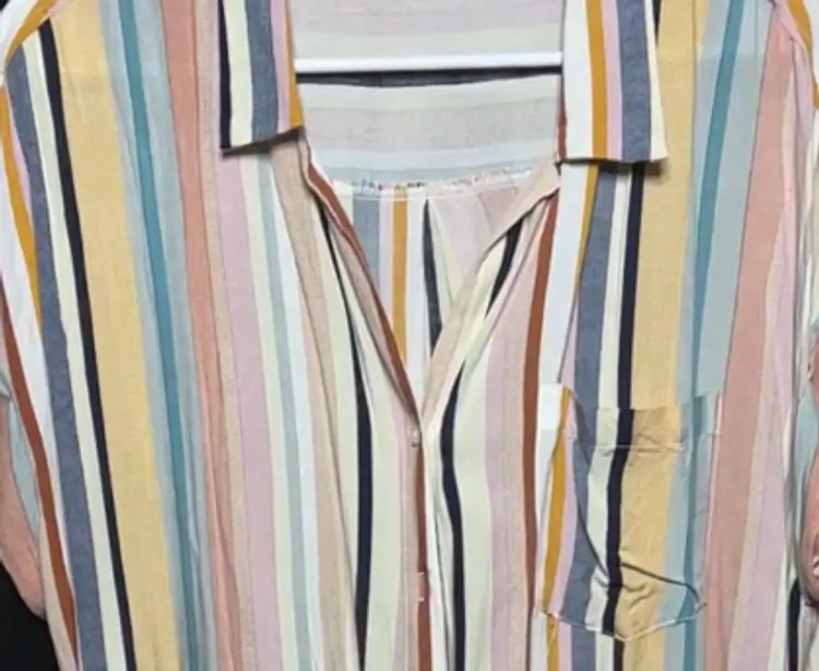 Umgee multi-colored striped button up dress with pockets Size L 100% Rayon