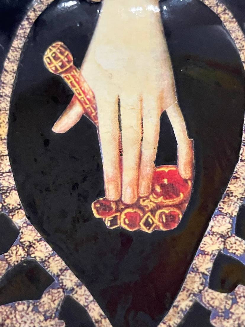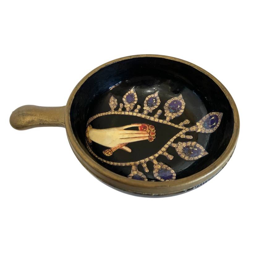 Fun up-cycled ceramic bowl signed by the artist in 1999. Cute for a trinket bowl. Decorative only not for food use. Measures 7” rim to handle and 1.75” tall. Please see all for condition and details thank you.