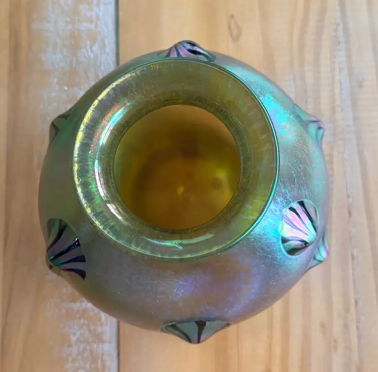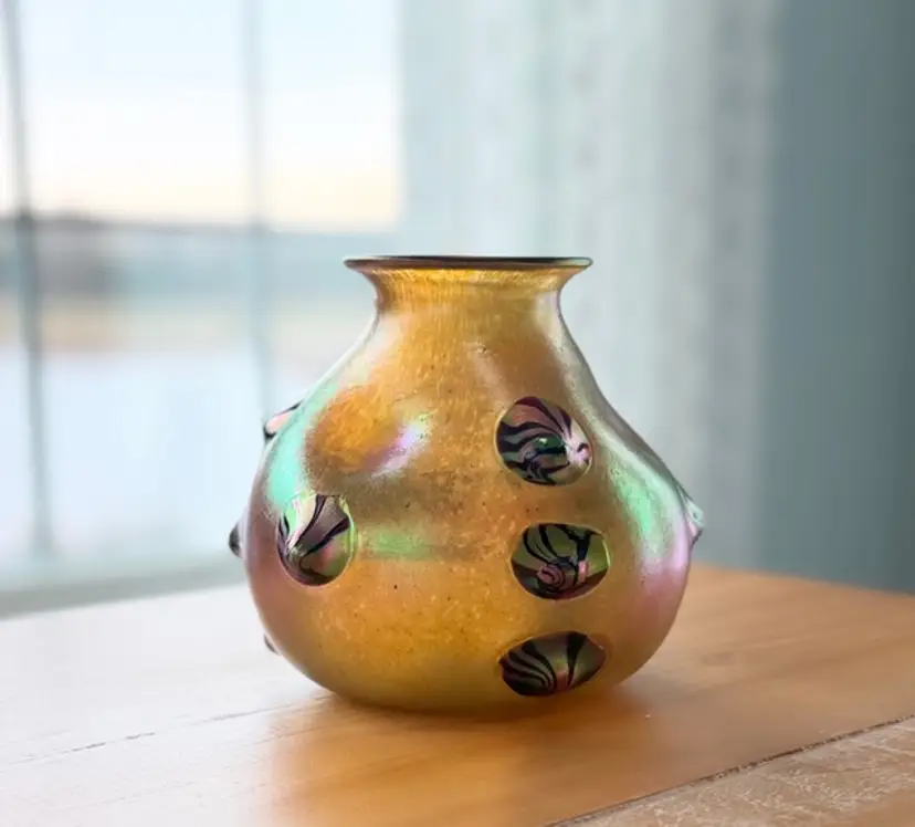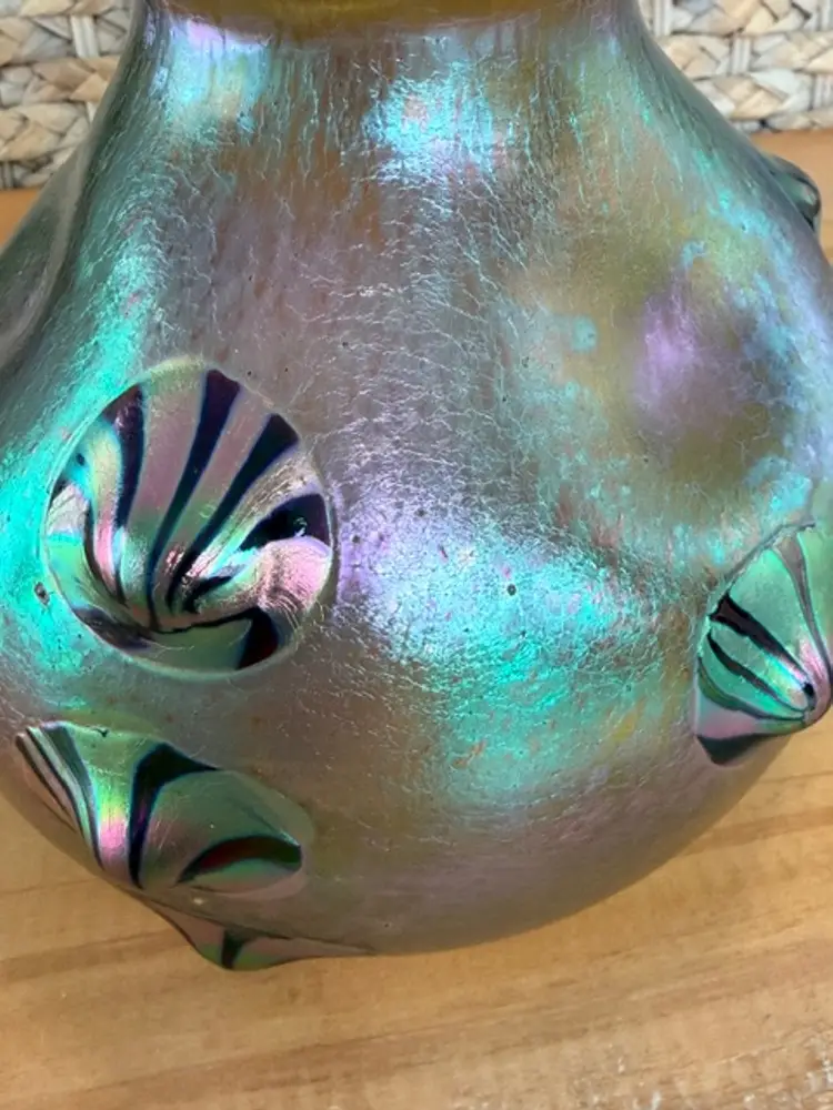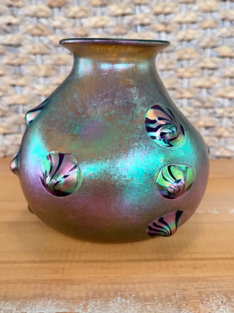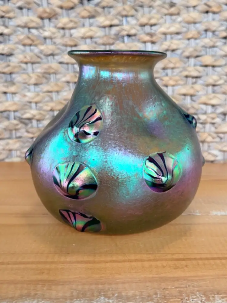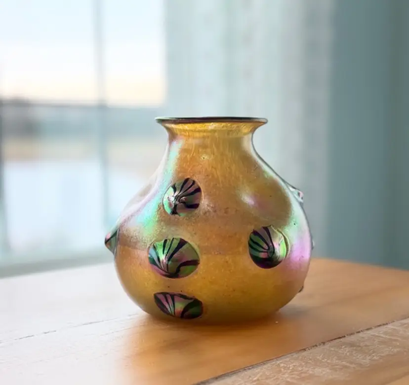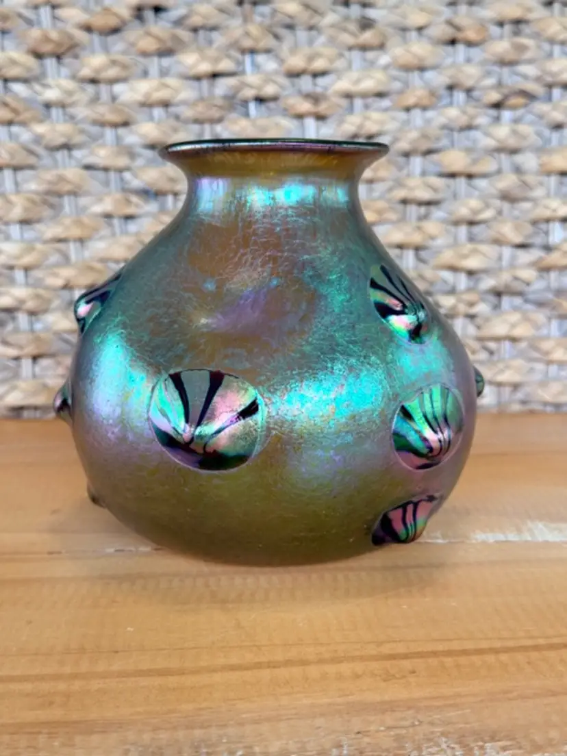 Unsigned Loetz Leonidas Art Glass Vase 5.75” Handblown