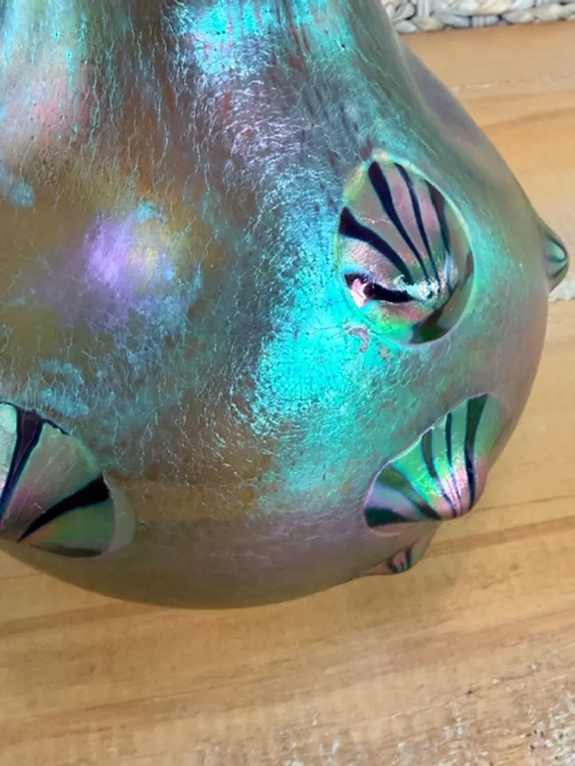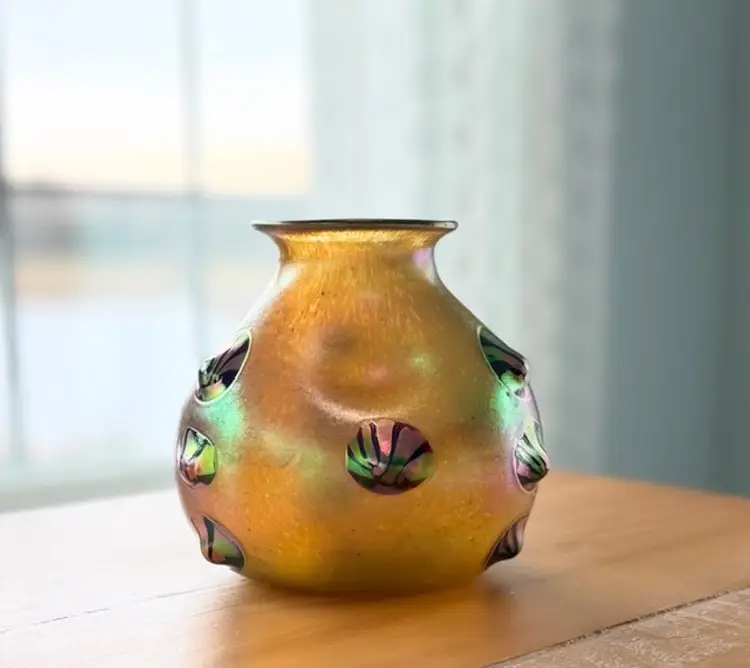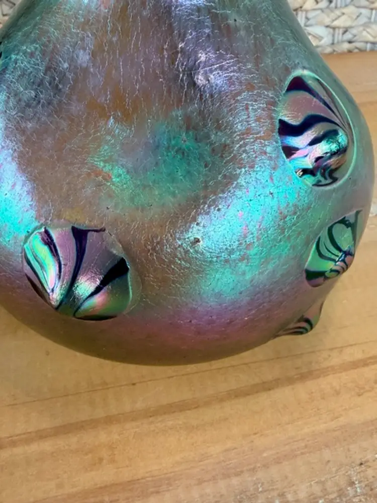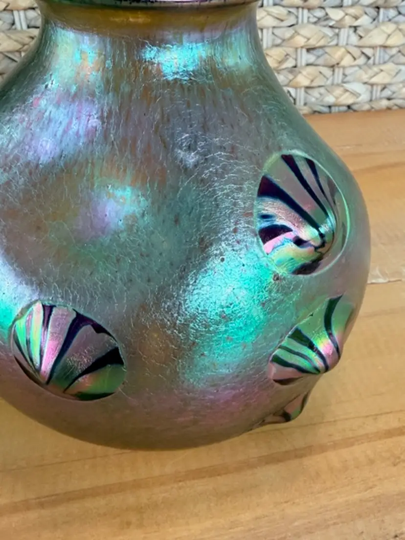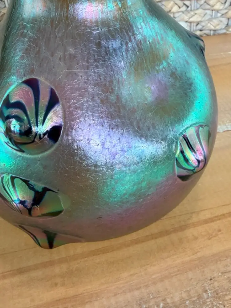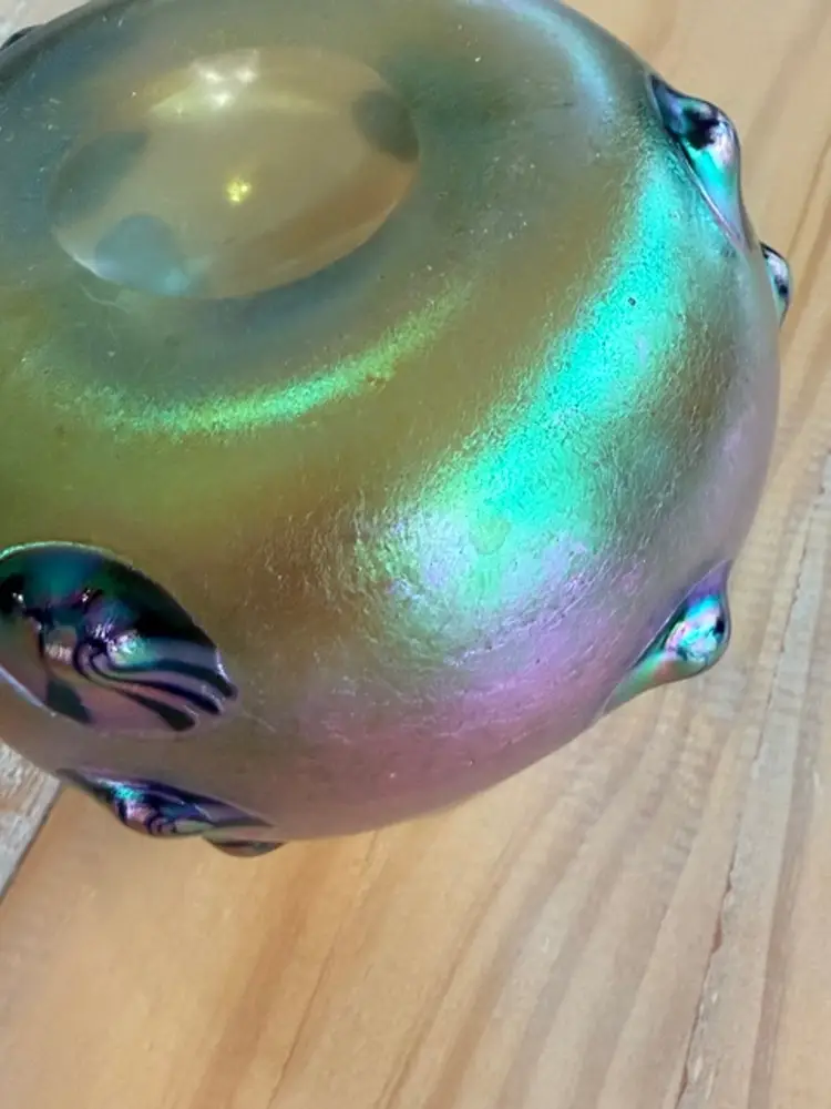 Unsigned Loetz Leonidas Art Glass Vase 5.75” Handblown