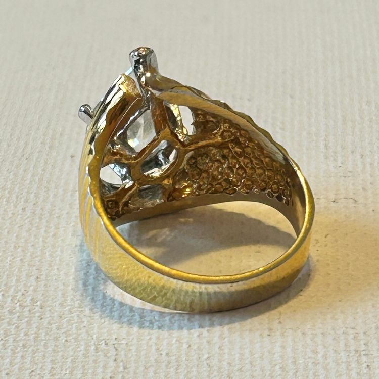 Very slight gold tone loss on band and tops of ridges as seen in photos. FYI