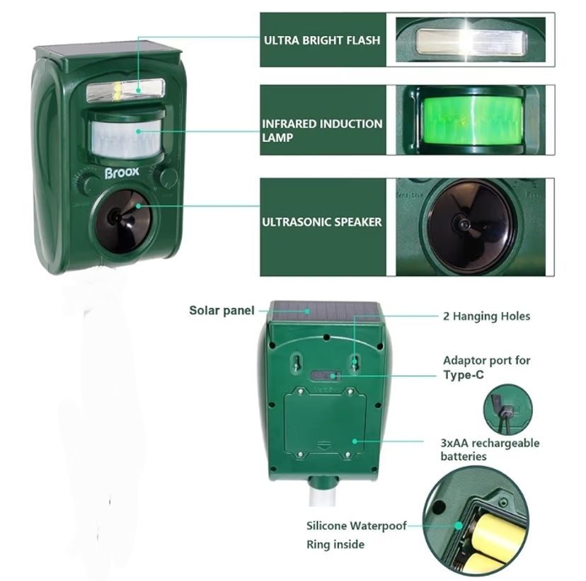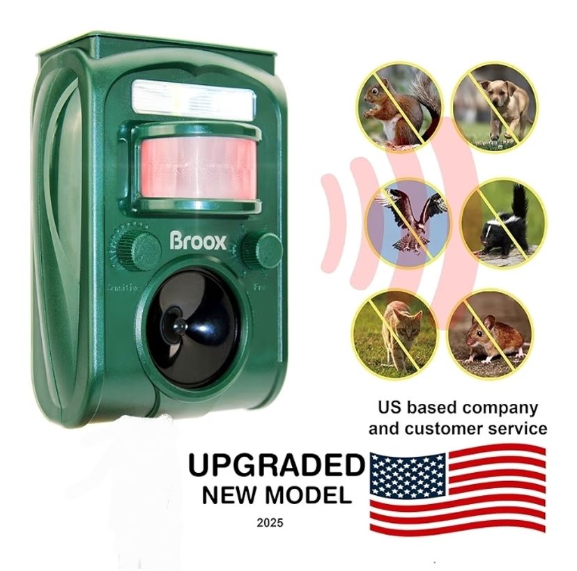 Broox 2025 Upgraded Solar Animal Repellent, Cat Repellent Outdoor, Squirrel Repellent, Deer Repellent, Ultrasonic pest Repeller, IP65 Waterproof, Motion Detection, Dog, Raccoon, Skunk, Rabbit, Rodent