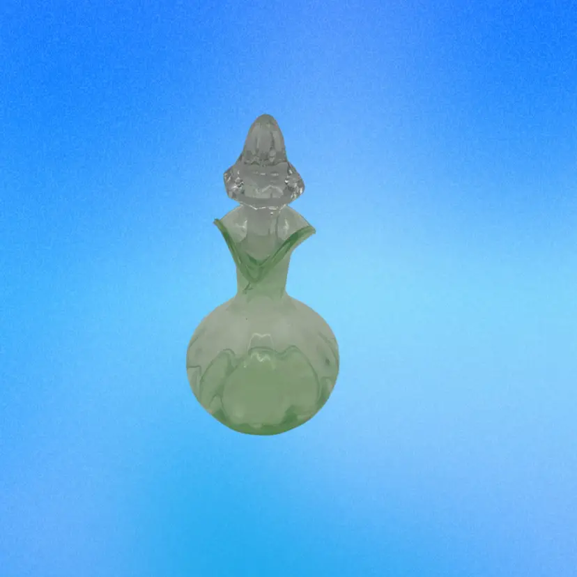 Uranium Glass Oil/Vinegar Cruet Bottle With Stopper, 5-1/2” Tall