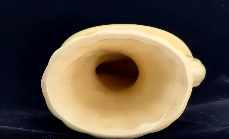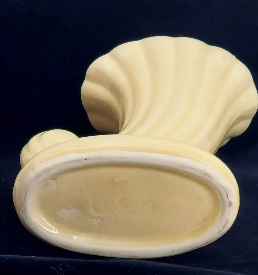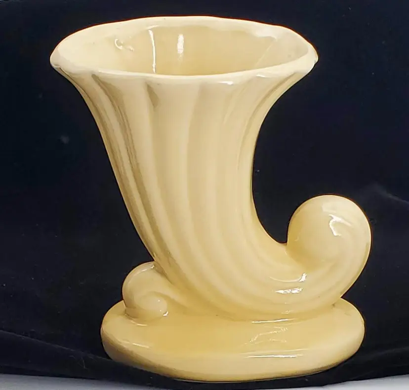 This charming USA Pottery vase comes in a luscious buttery yellow color. It measures 6" high and about 5.25 inches across. A great addition to your fall decor!