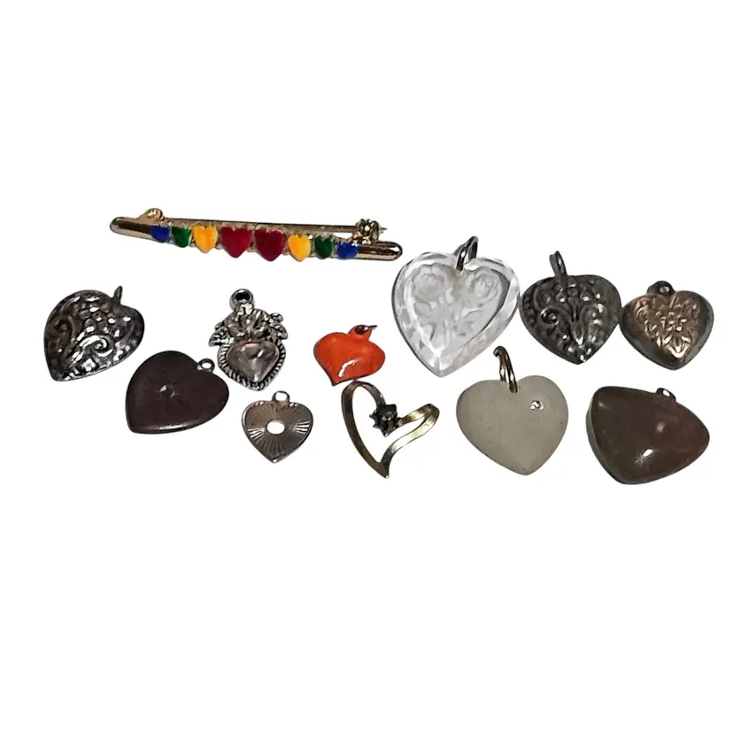 Fun varity of Valentine craft lot. Goldtone puffy heart necklace is Avon. There is 2 piece set gold and silver horse lovers hearts unbranded. Cute bunny yellow chick egg Avon pin. Total 11 loss heart pendent charms. If you have any questions please feel free to message me in the chat.