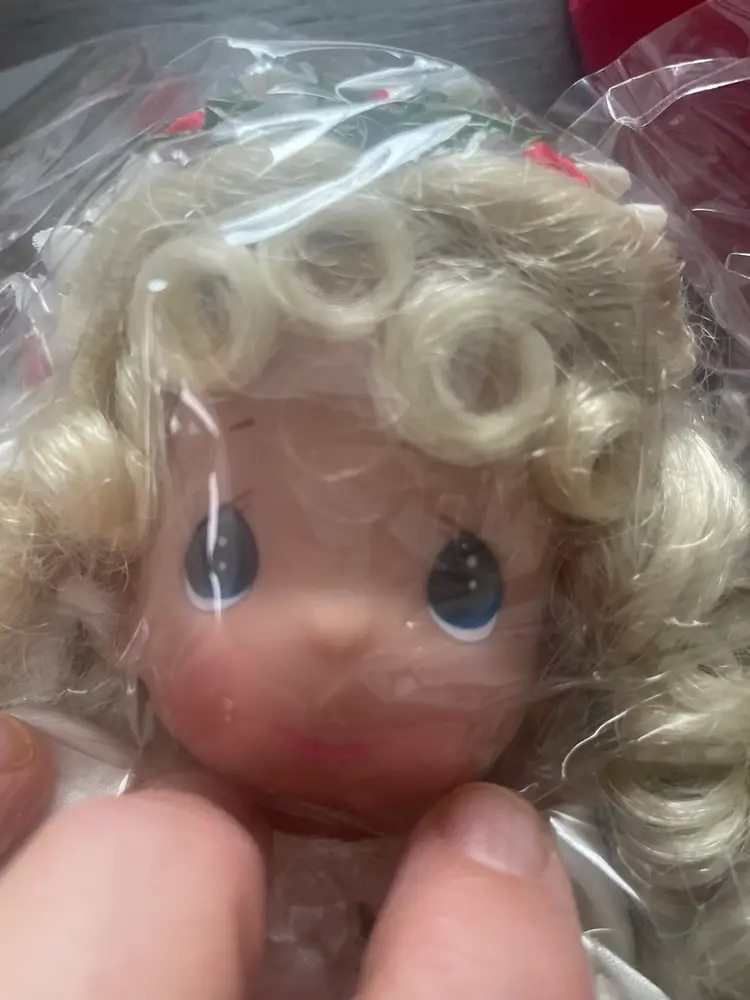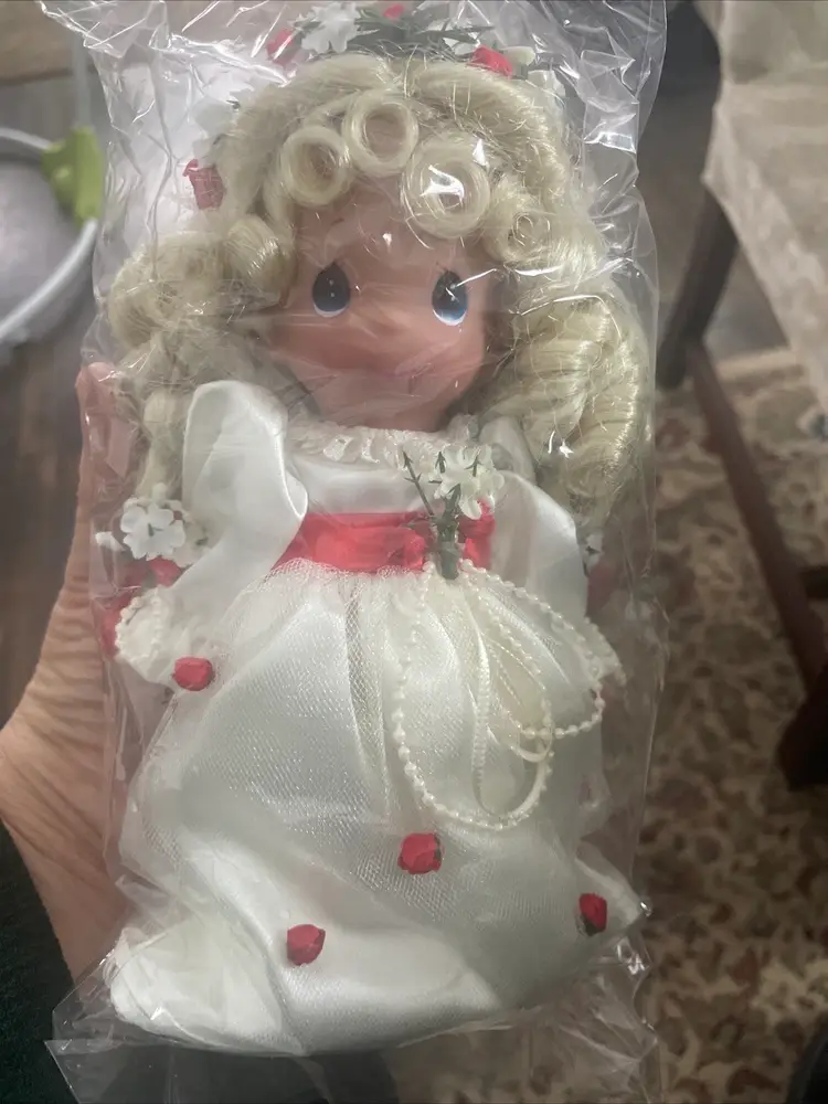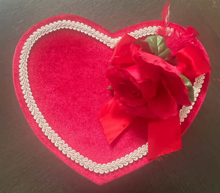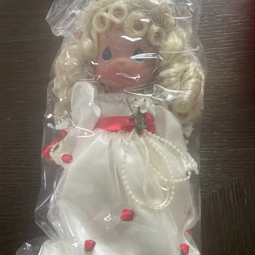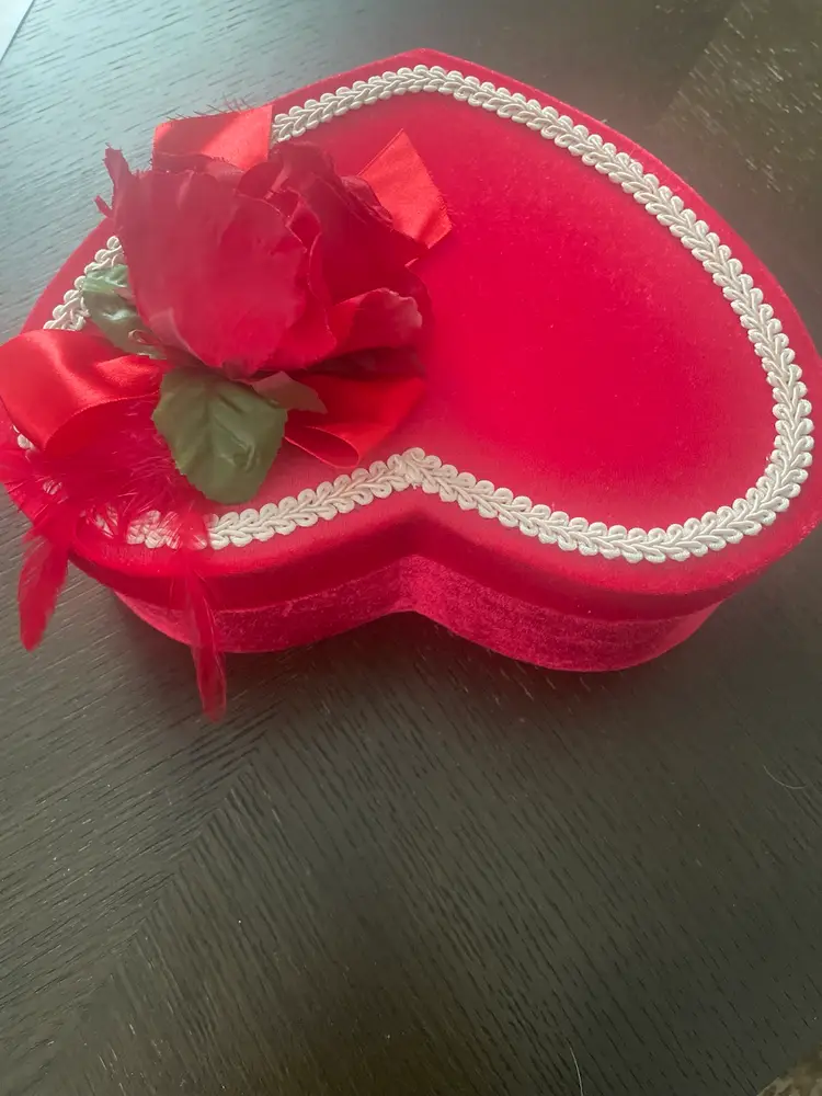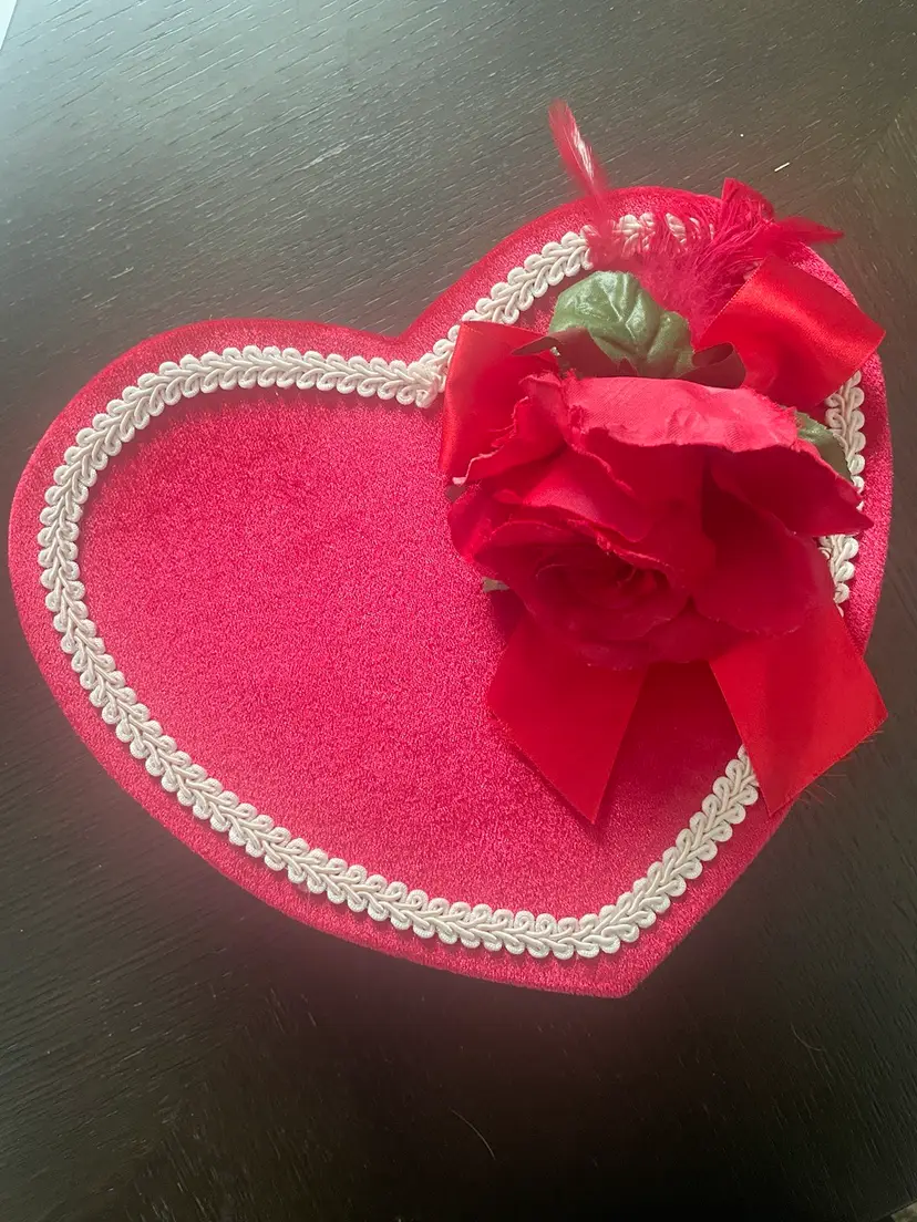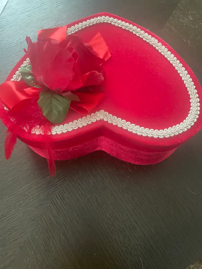 New old stock in it’s original sealed plastic this doll is so sweet with her rose bud dress and faux pearls. She also comes in her original heart shaped box!!!! The box is in great (almost) vintage condition! I high lighted a few tiny wear marks on rim under lid. Please view all photos of this unique Valentine’s Day find!!! Not a toy and not recommended for children under 5 years old.