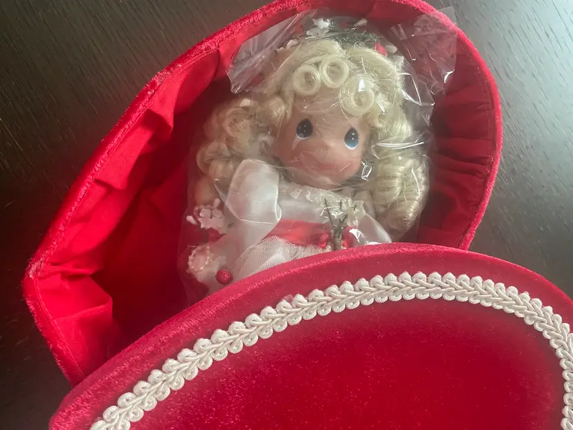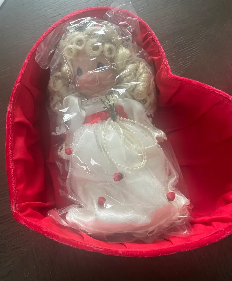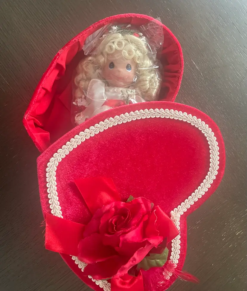 Valentines Day Precious Moments Doll In Original Velvet/velour Heart Shaped Box. (almost) Vintage 2007