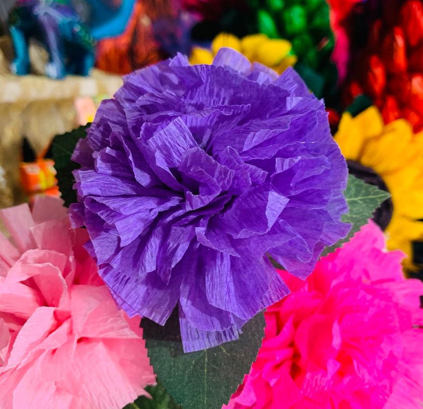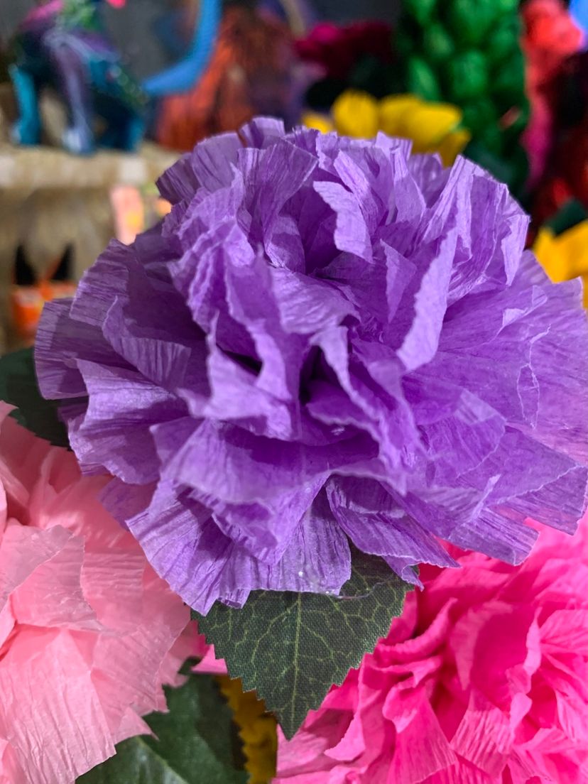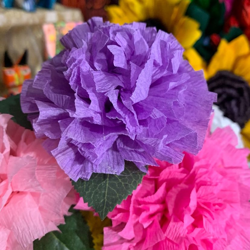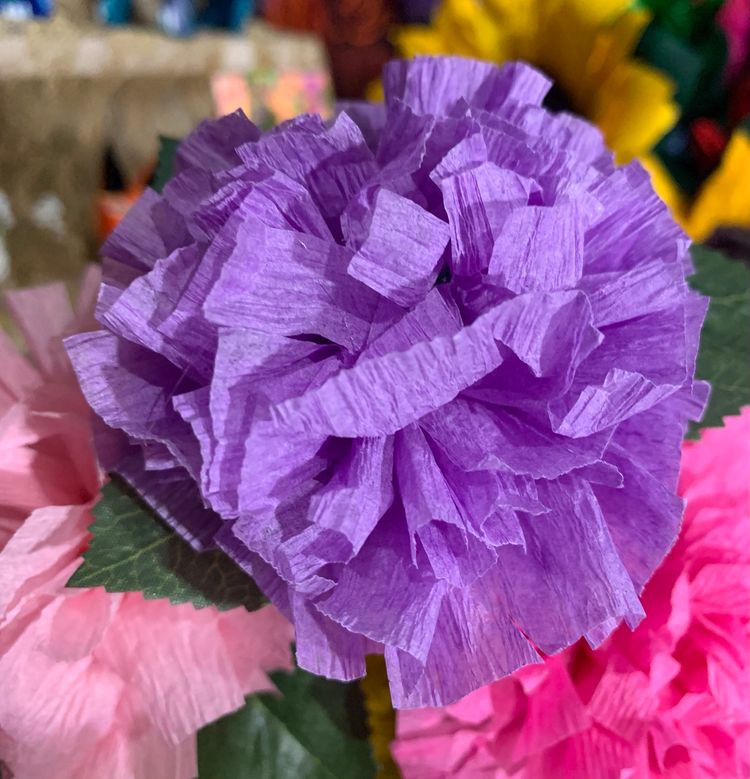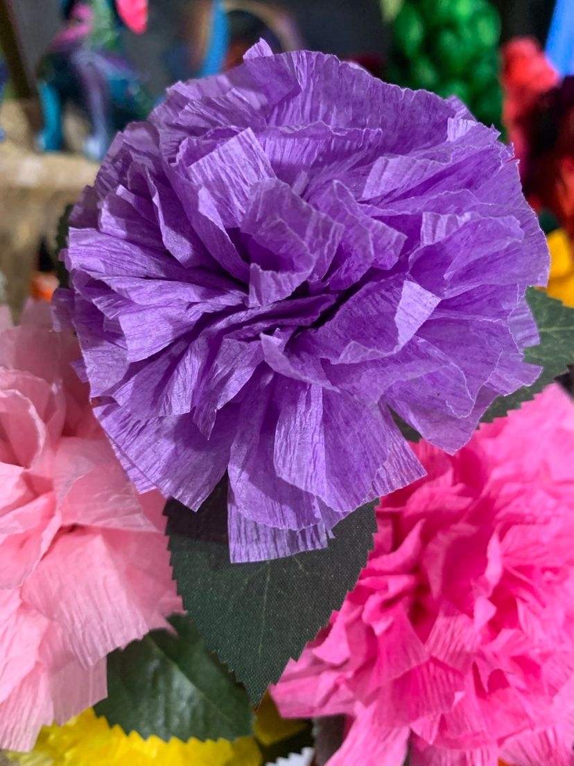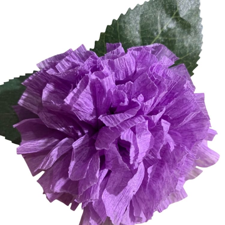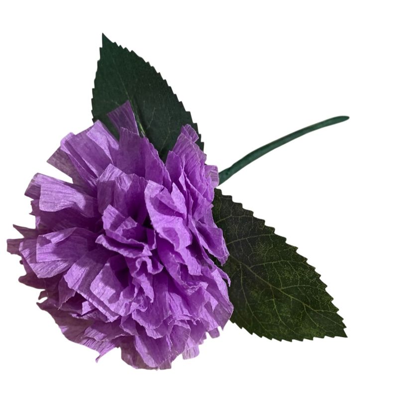 Vibrant Crepe Paper Flowers Made By Me Lavender Color Marigold Carnation Blossom 3.5-4” Diameter Blossom And 5.5-6” Tall Overall