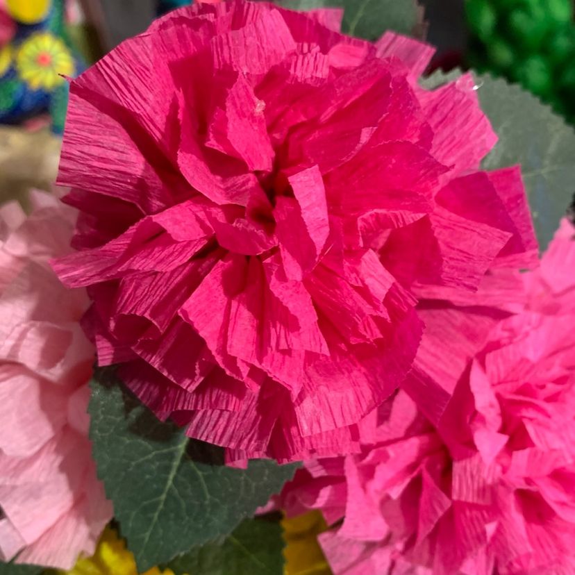 New crepe paper flower. Made by me 3.5-4” diameter and overall 5.5-6” length.