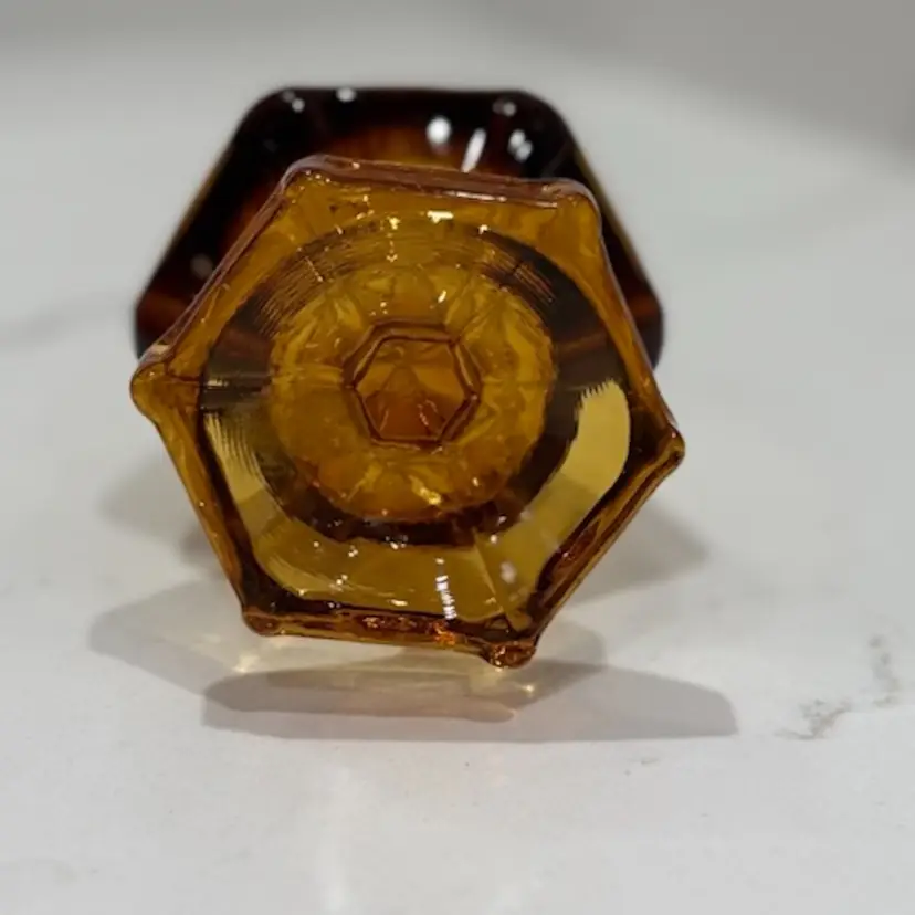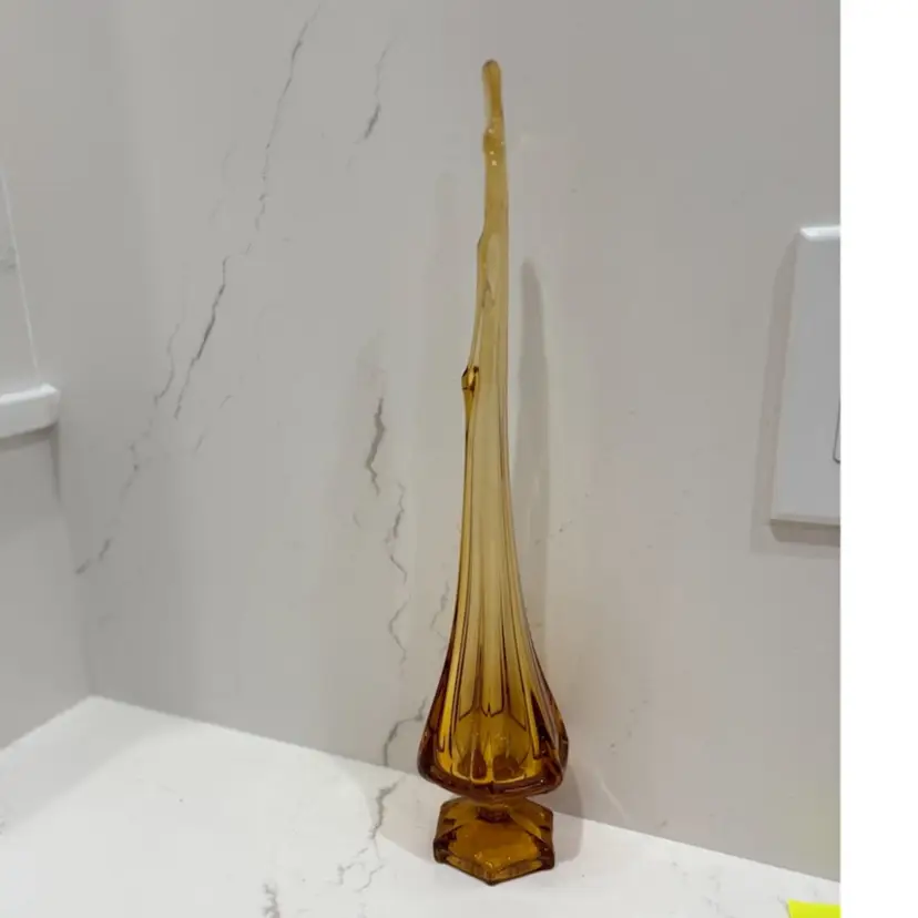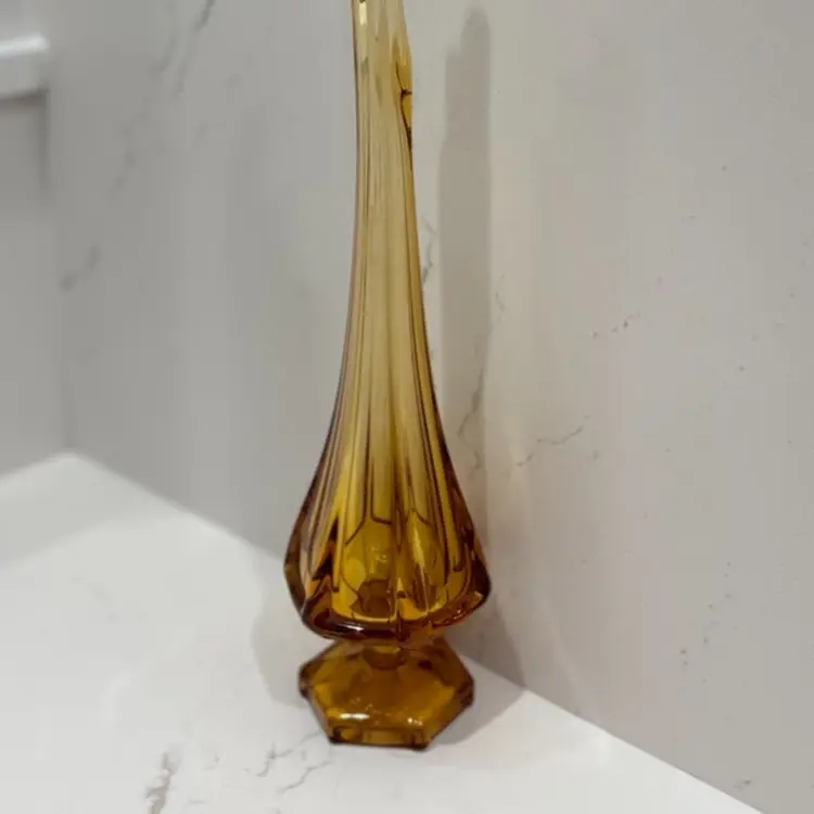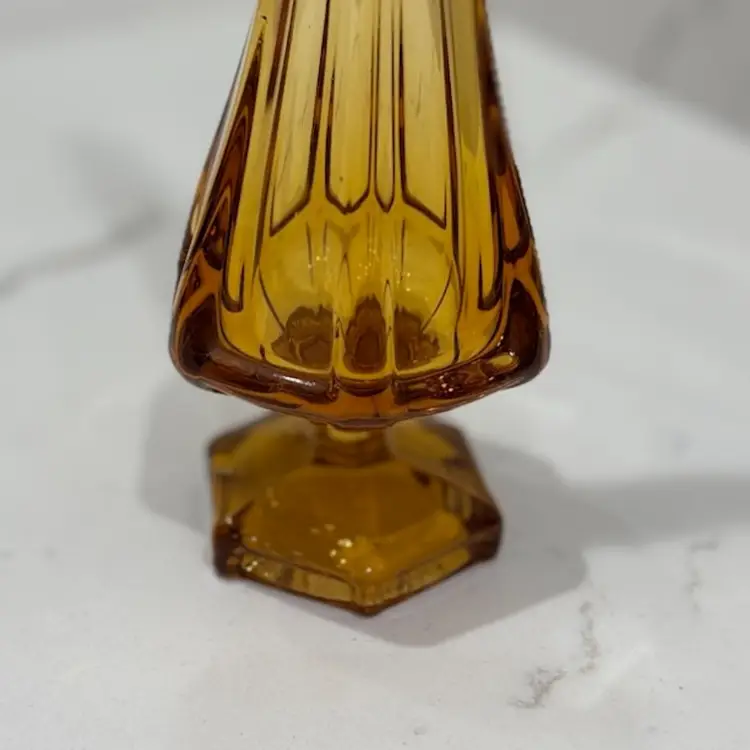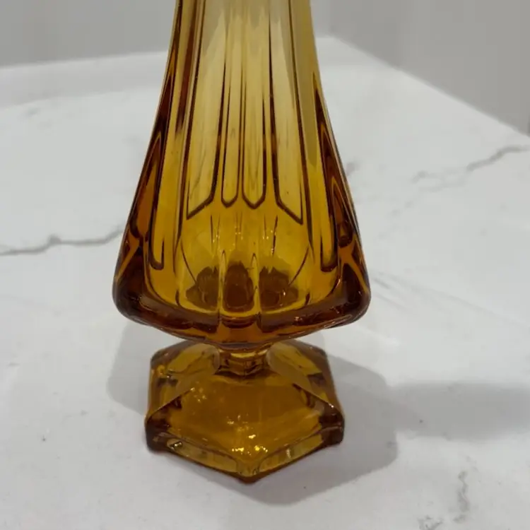 Viking Swung Glass 6 Sided Pedestal Vase In Amber 15"