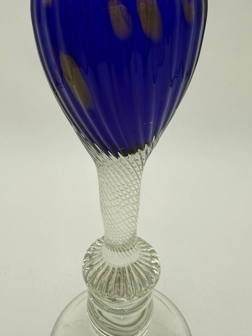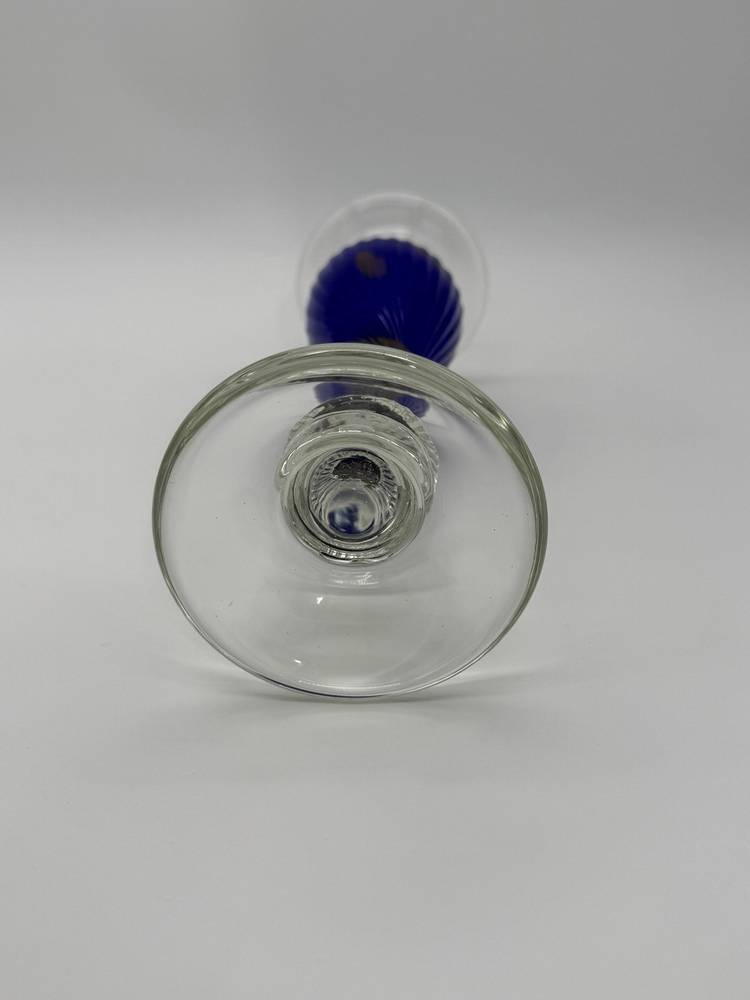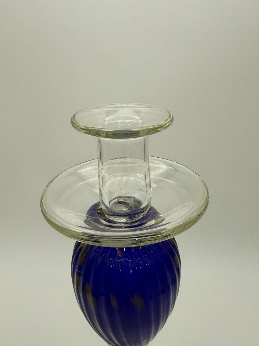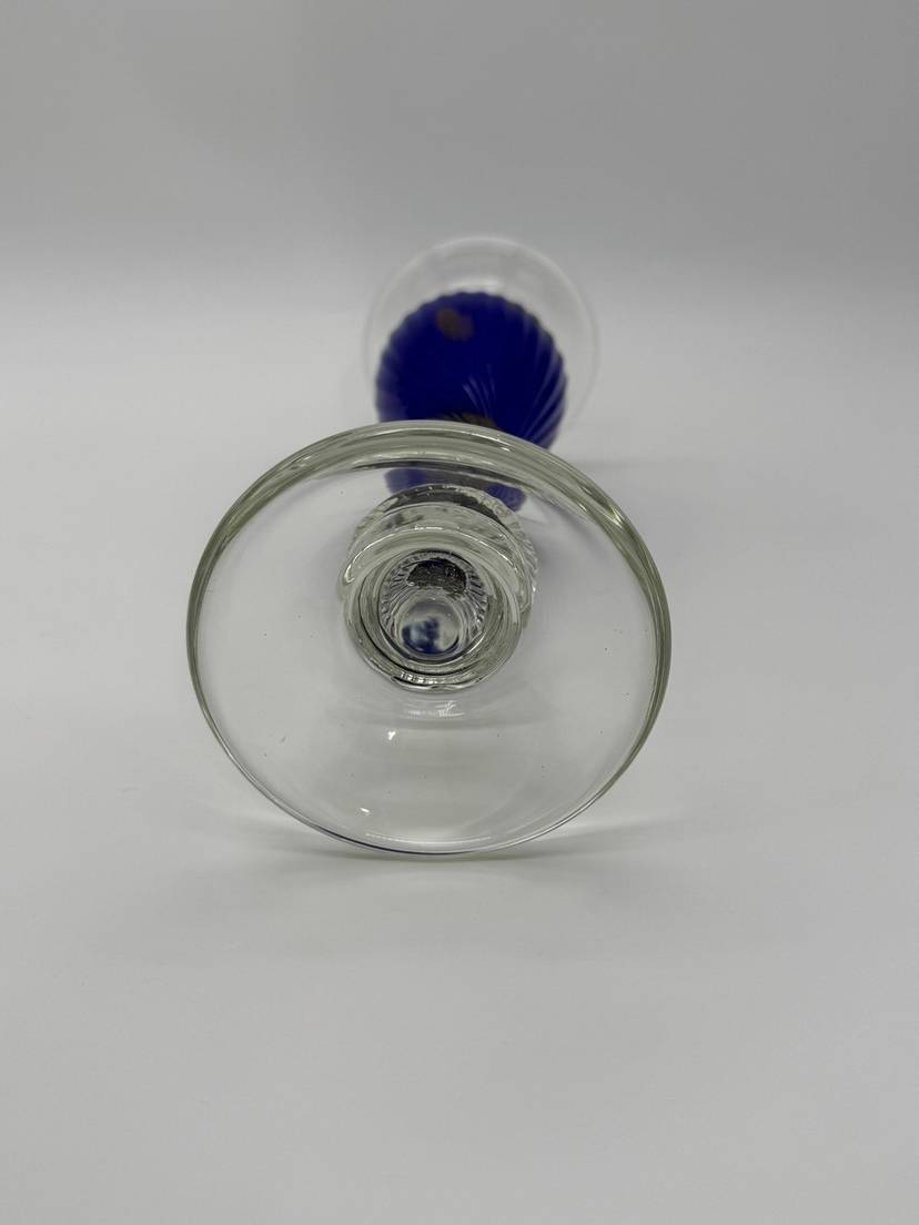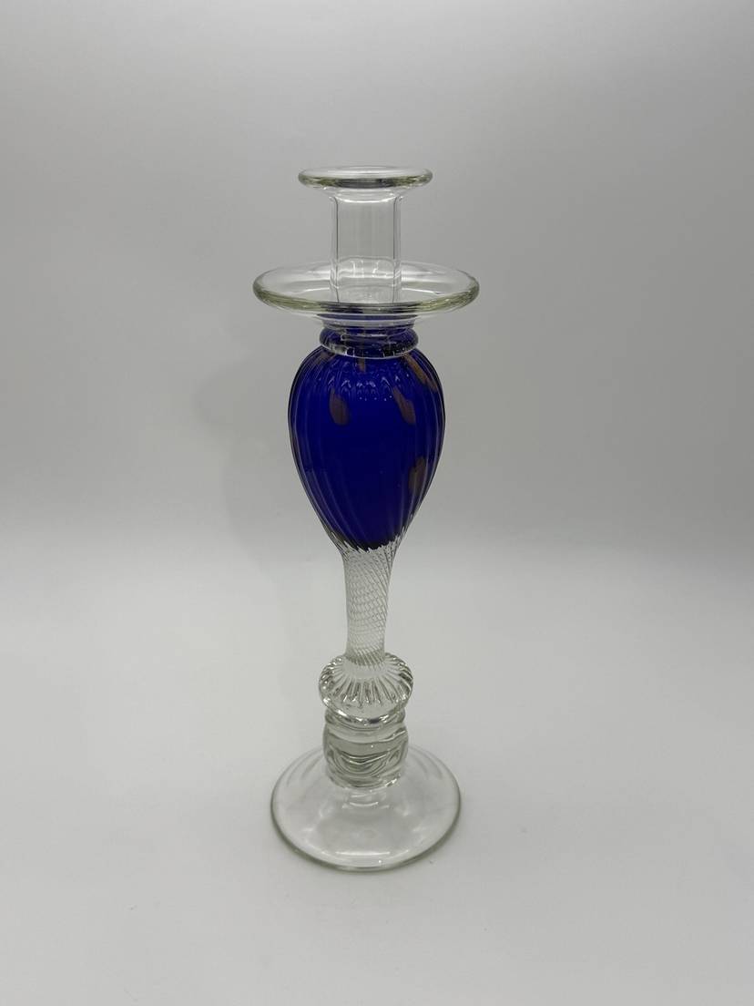 The Vincenzo Nason Murano Handblown Art Glass Candlestick Holder in Blue Aventurine is a stunning piece of furniture decor that adds a touch of elegance to any room. This 13-inch candle holder features a beautiful blue aventurine pattern with gold glitter accents, making it suitable for all occasions. Handmade in Italy using a hand-blown glass production technique, this unique candle holder is designed for easy care and is sure to be a standout piece in any collection.