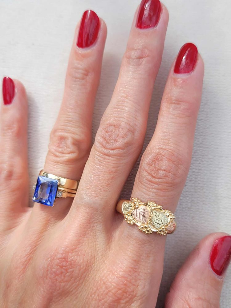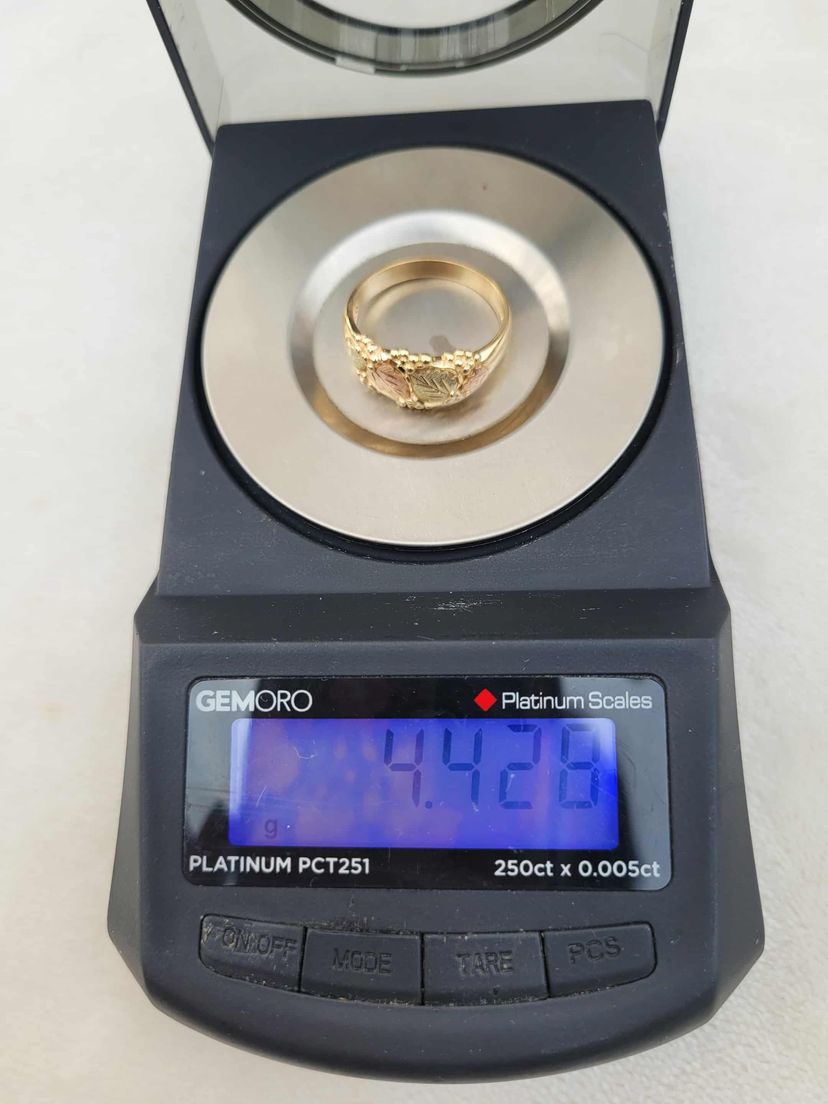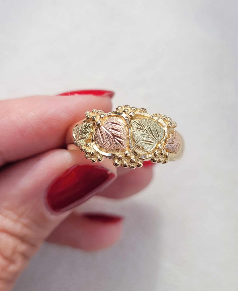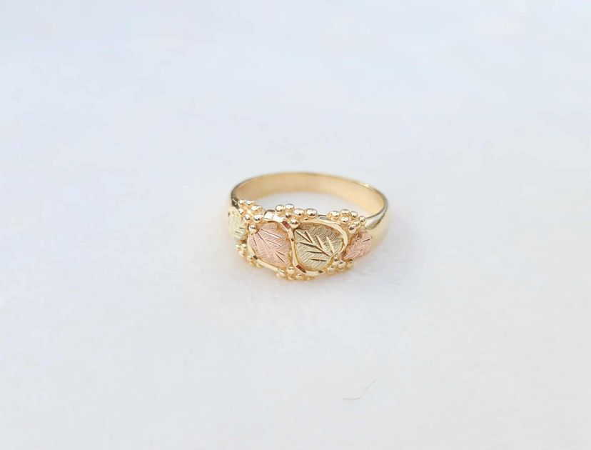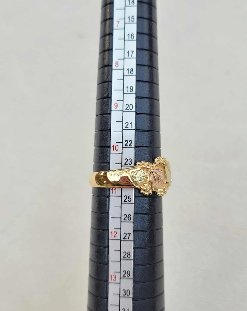 Handsome men's solid 10k gold band in a classic Black Hills Gold design! This is in good condition from an estate and weighs 4.4 grams. Please see pictures for details and measurements, does not include my ring box.