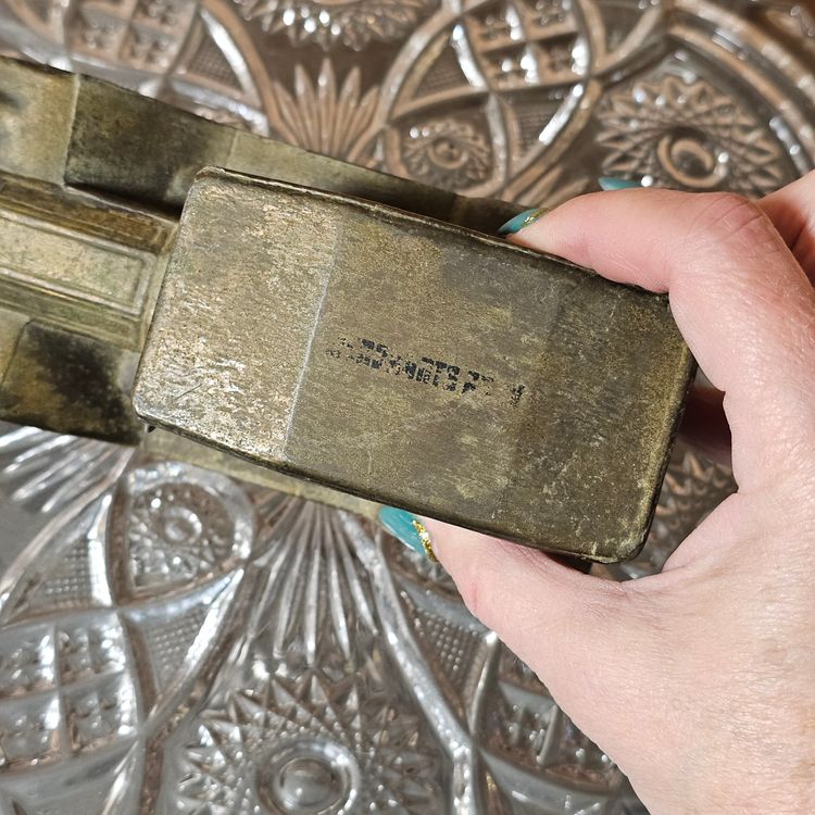Material: Heavy diecast metal with a brass or bronze-like finish/patina.
