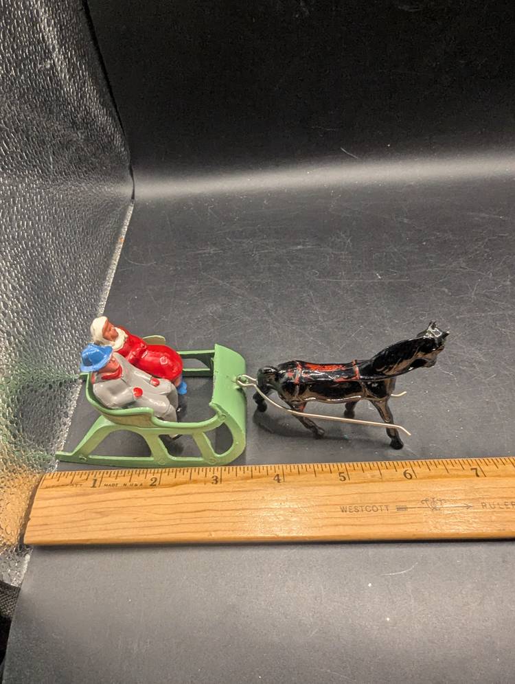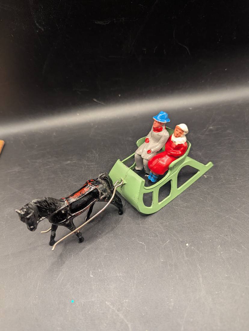 This is a fantastic Vintage 1940's BARCLAY #510 Lead Christmas Display ONE HORSE OPEN SLEIGH With Man and Woman. Please see all pictures for condition and measurements.