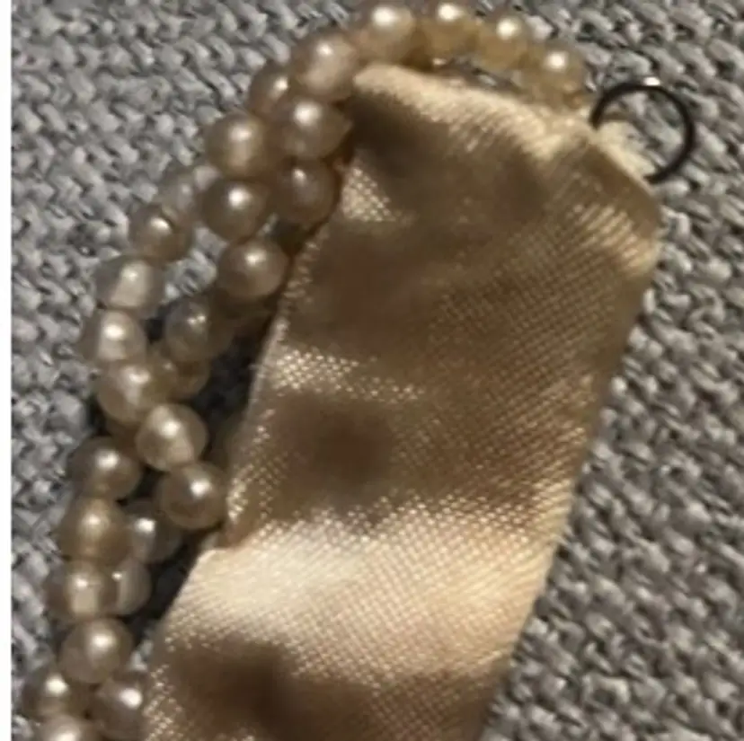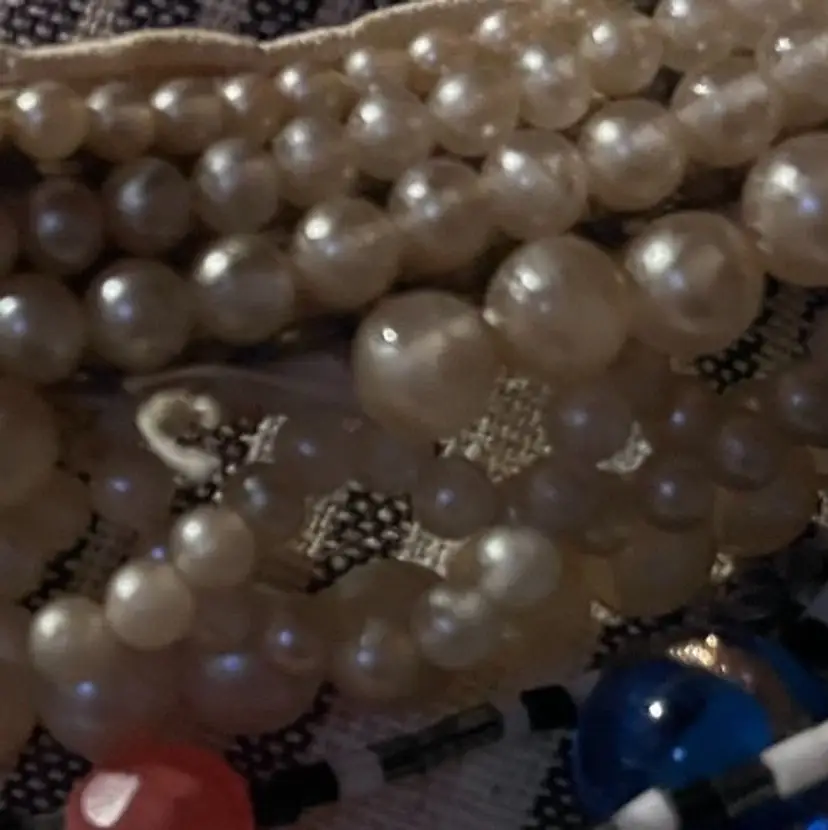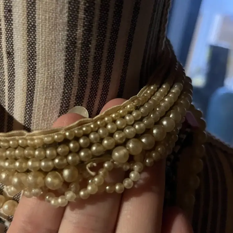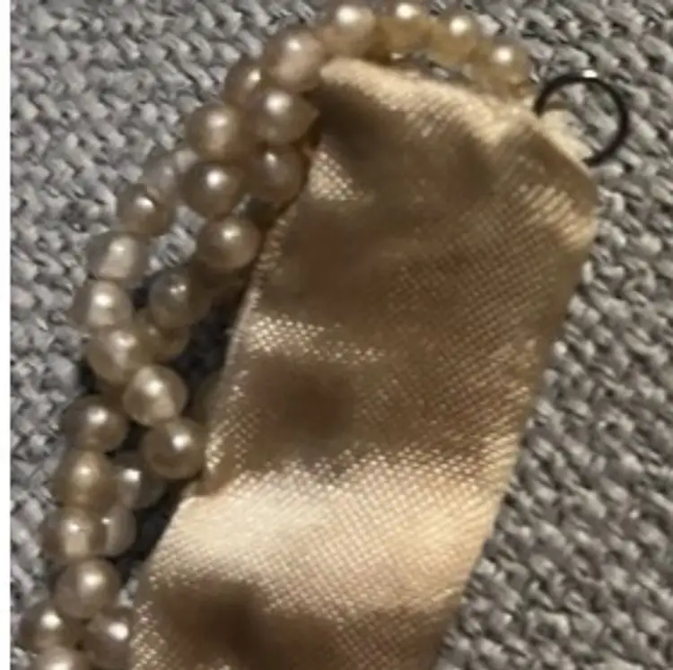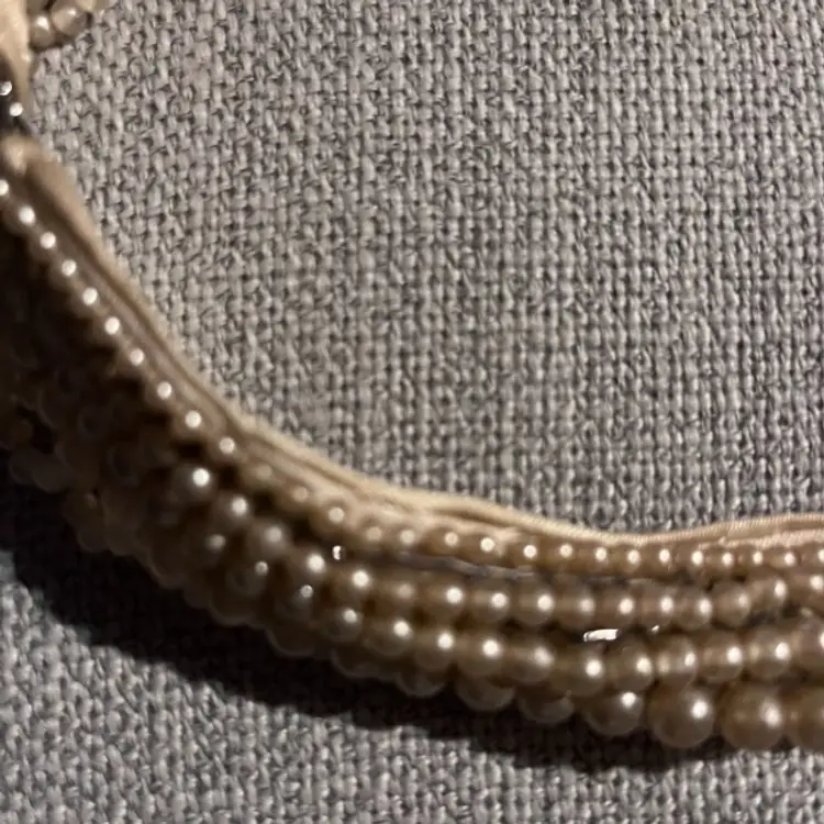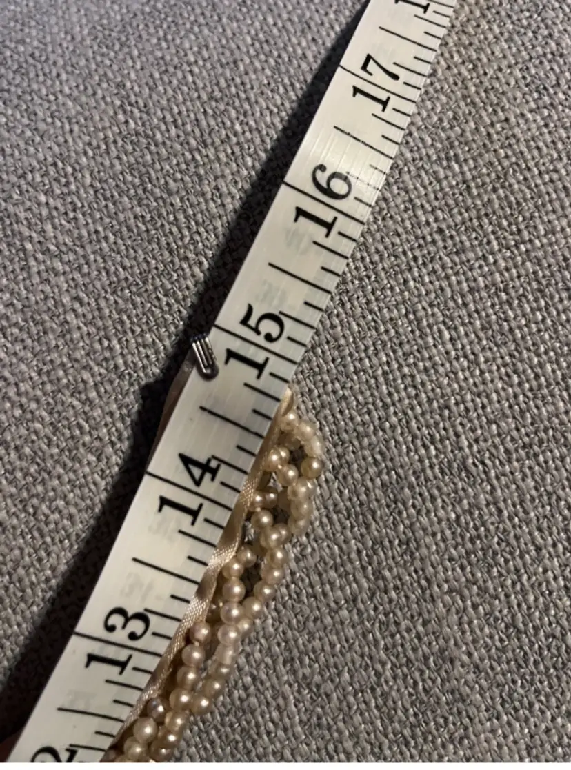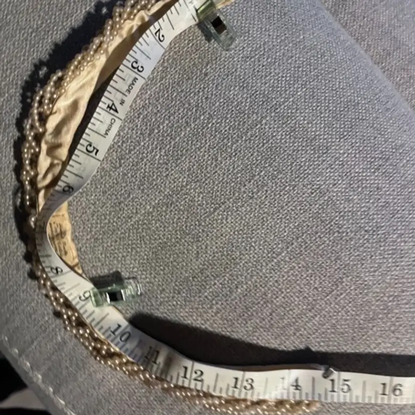 Gorgeous vintage Mid-Century Modern MCM Faux pearl collar. Approx 15" long. There are a couple of pearls missing in the front, on the bottom. Please see photos