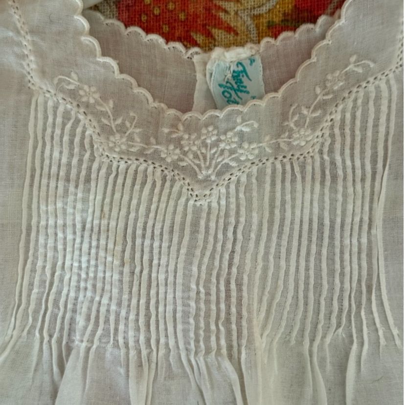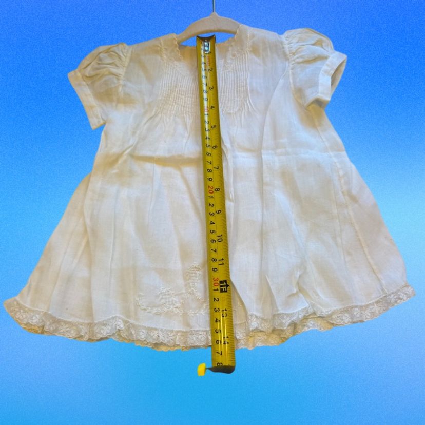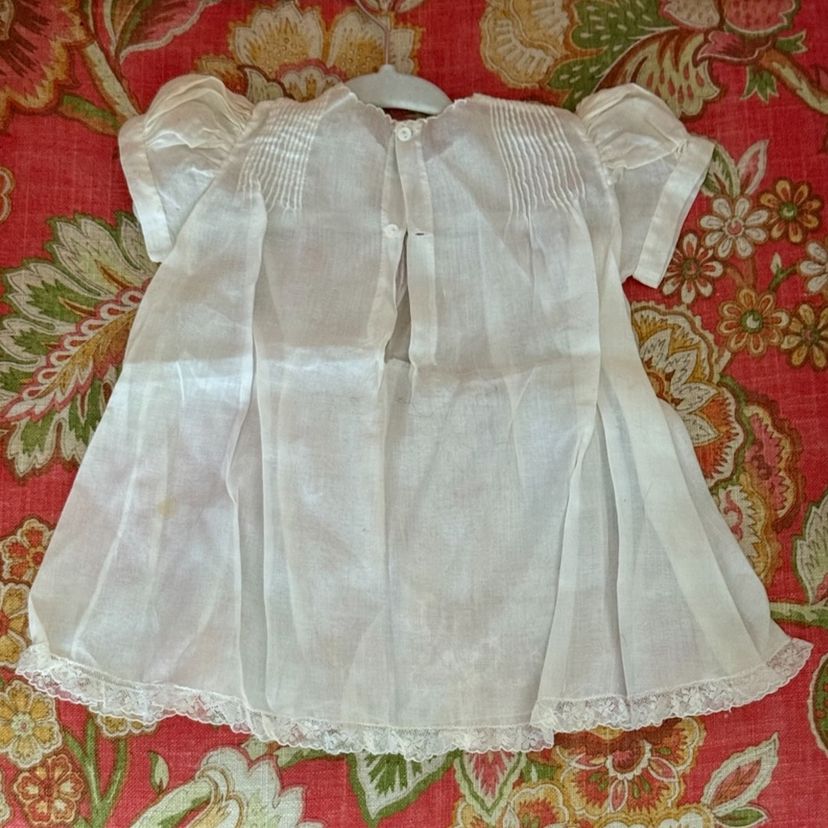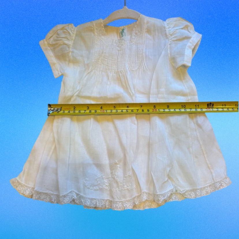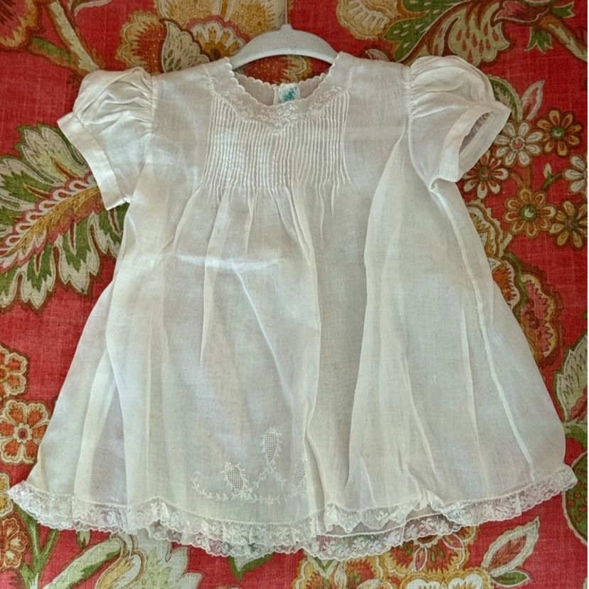 Vintage 1950’s Tiny Tots Baby Dress White Fine Cotton-Linen Blend