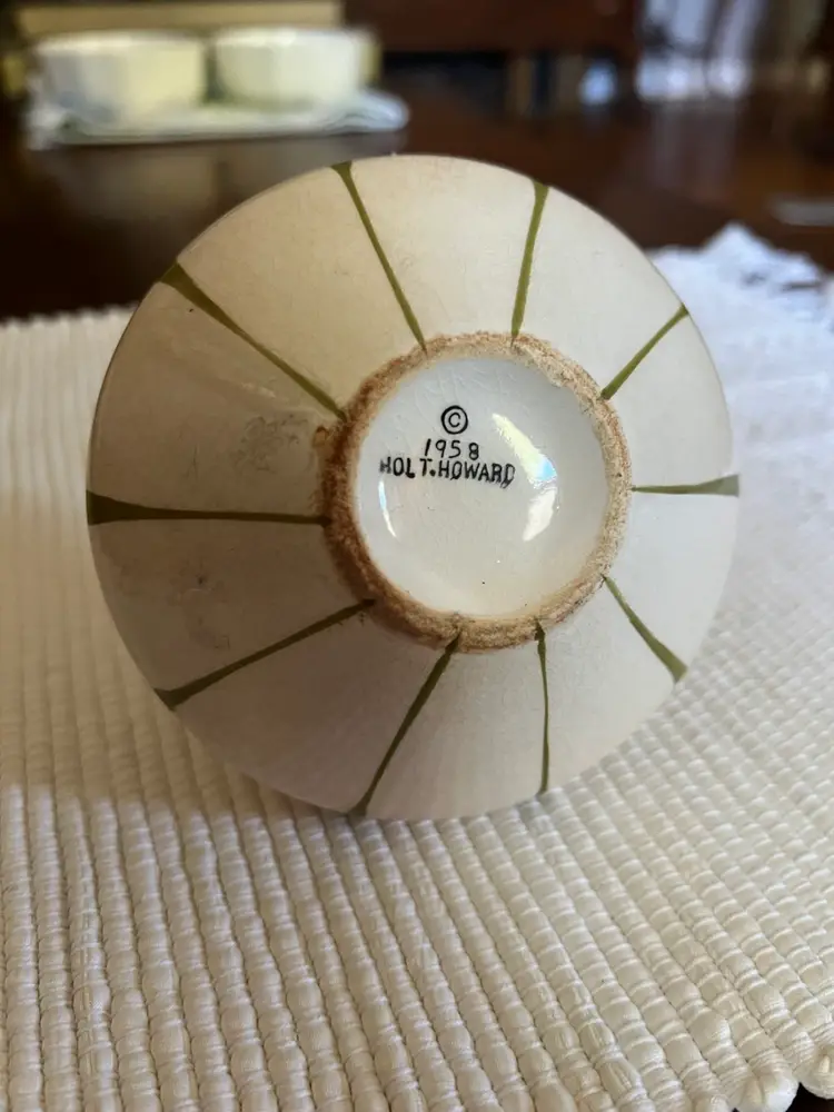 Vintage 1958 Holt Howard Pixie Condiment Jar. Bottom of jar ONLY. I photographed this with faux greenery (greenery not included). This jar makes the perfect planter. There are no chips or cracks in this jar. Just the right amount of crazing!!