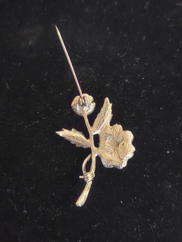 Goldette marked vintage rose with rhinestones brooch. Excellent used condition. Brooch is 1 3/4" high and 1 1/4" wide.