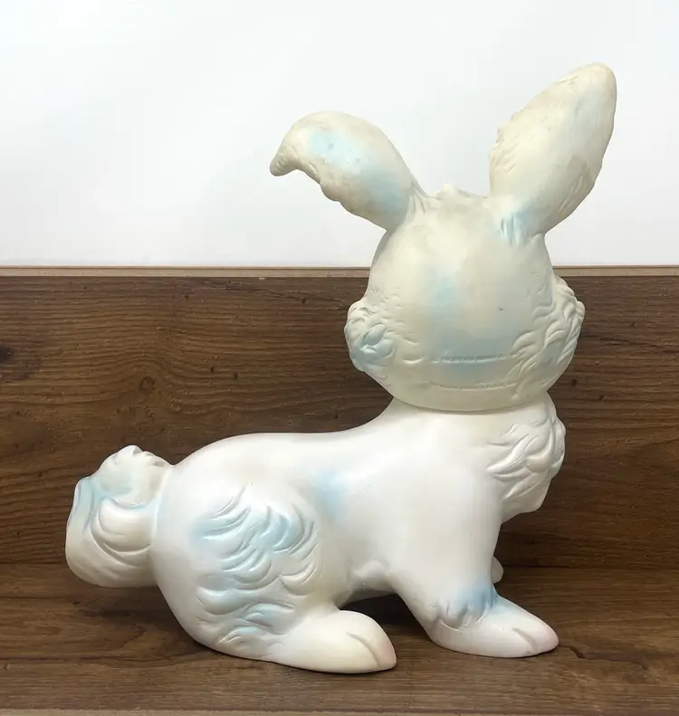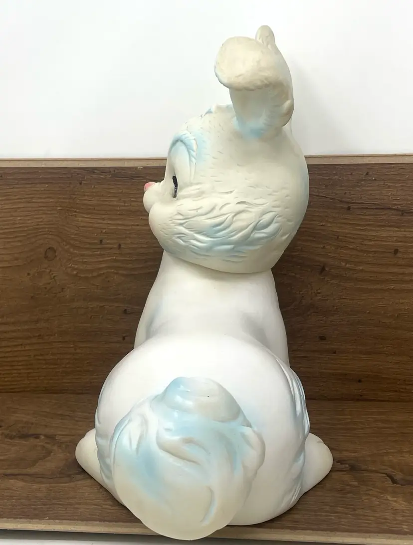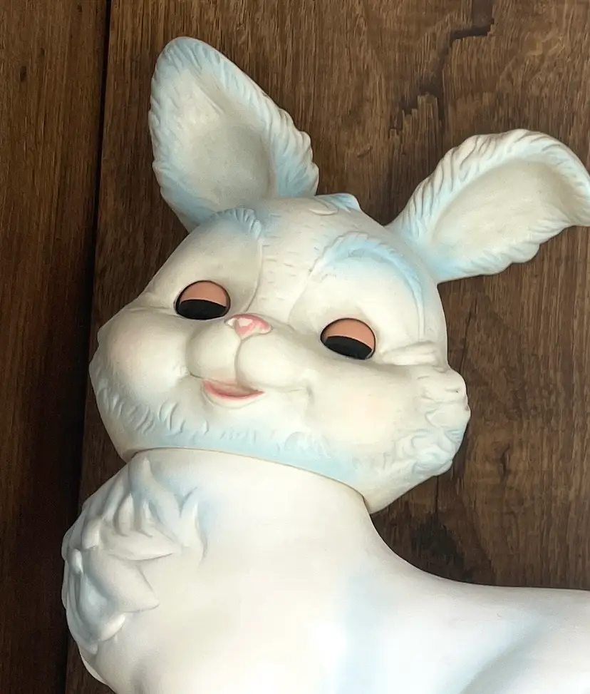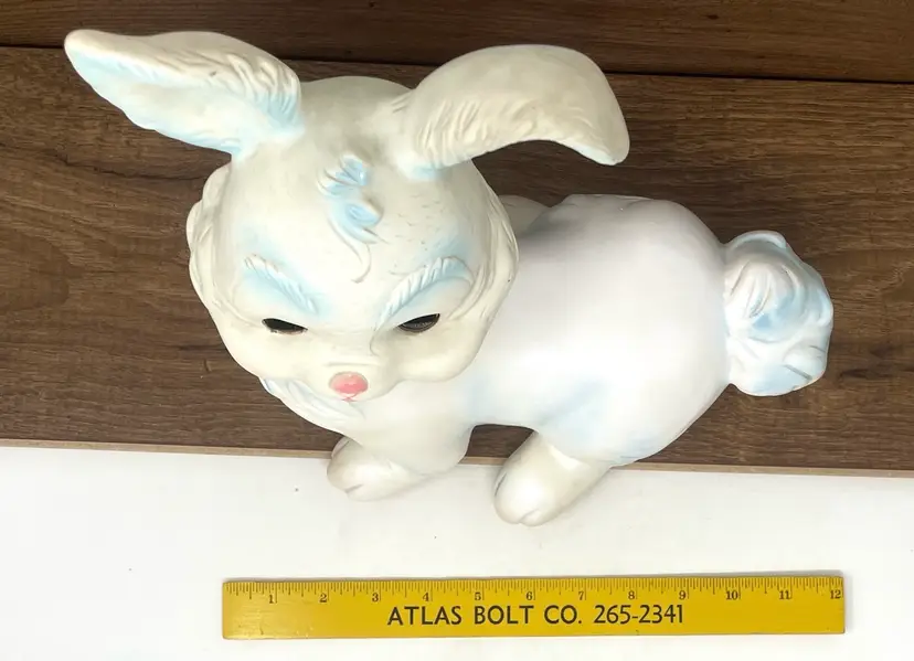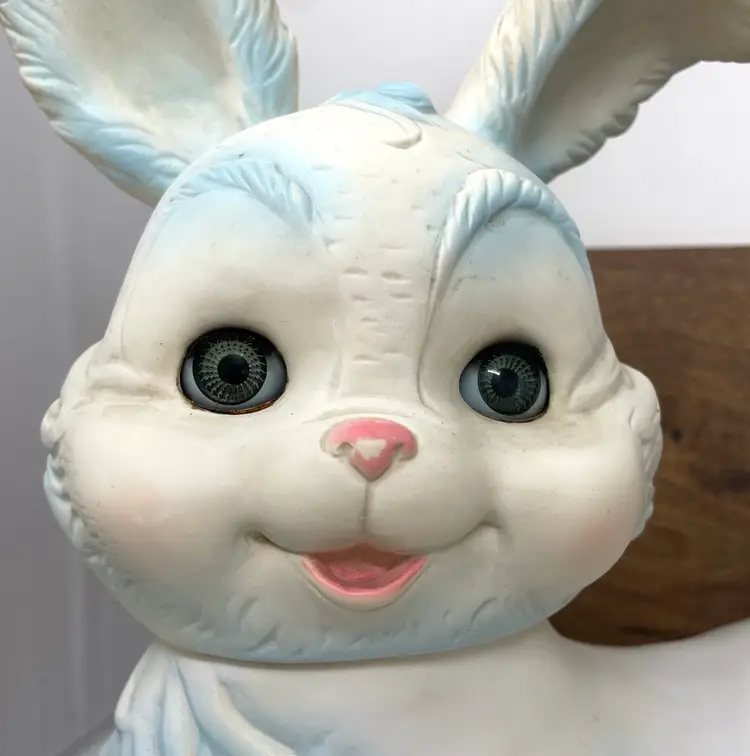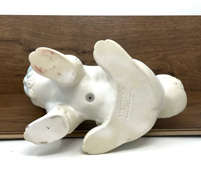 A fabulous Edward Mobley sleepy eyes squeak bunny. This guy is great! His eyes still work as well as his squeaker, nice and loud! He has a bit of dirt/discoloration, mostly on his head. I gently cleaned him, but didn’t want to cause damage, so didn’t scrub. Please see all photos prior to purchase.