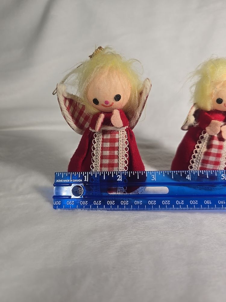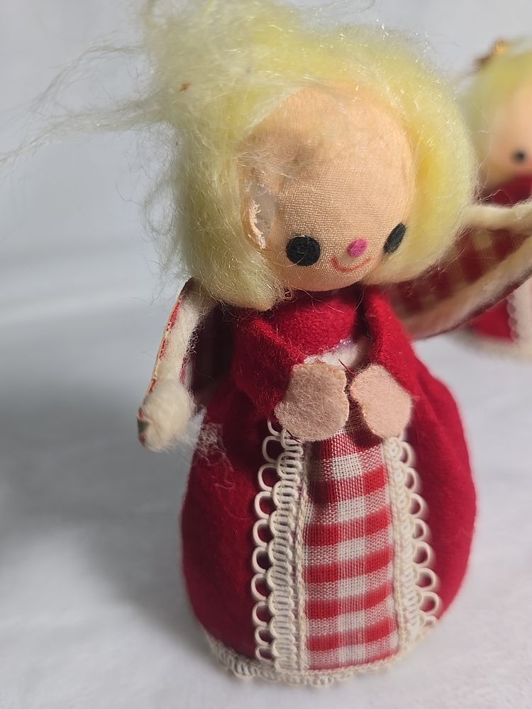 Condition: Pre-owned vintage condition. One angel shows wear on the face fabric, including a small hole and mark to the underlying material. Light age wear overall. Please review photos closely for details.