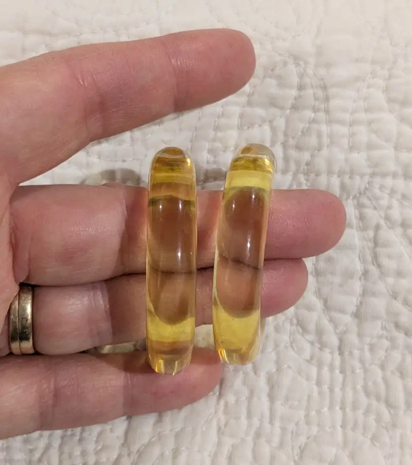 Vintage 1970's Large Pale Yellow Lucite Pierced Earrings