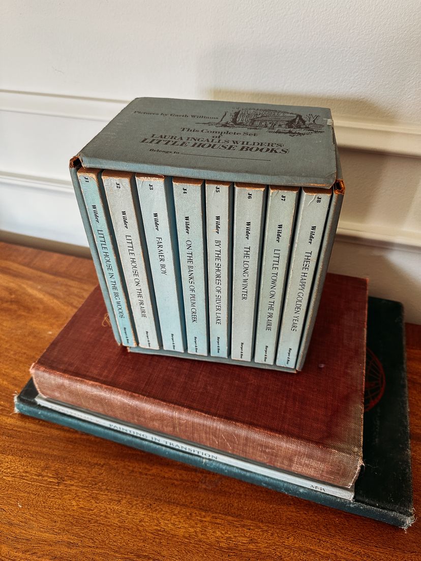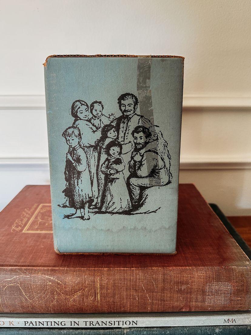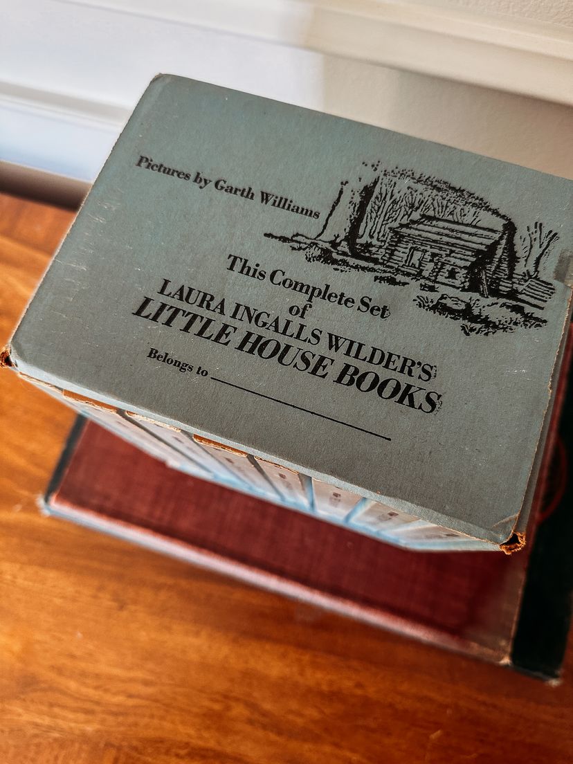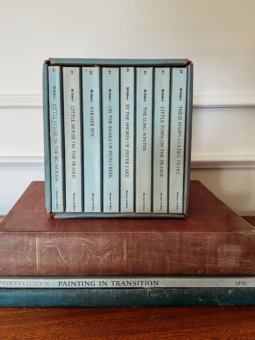 The adorable blue storage box shows some vintage wear and tear, but the books themselves are in great condition! Would make a great addition to any little library!