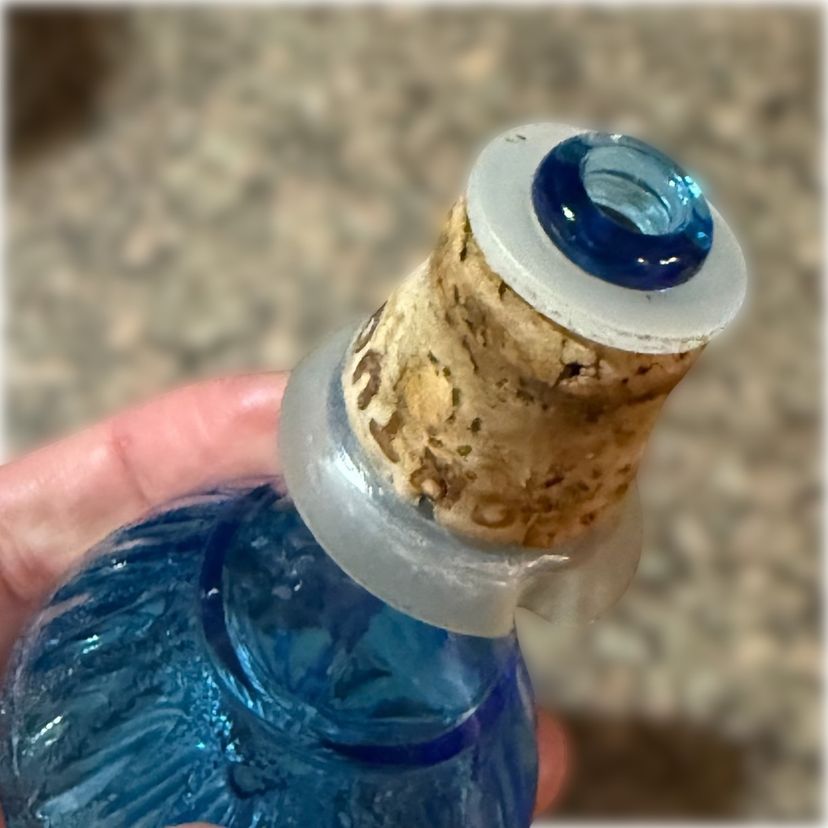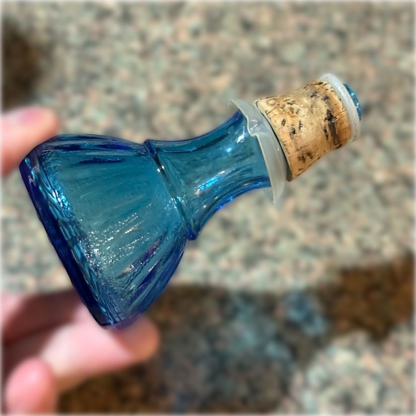 Approx 13" tall including stopper x 6" at widest x base 3.25 diameter. Cork says “Portugal”. Very good condition.