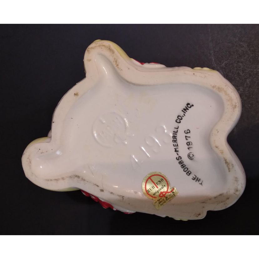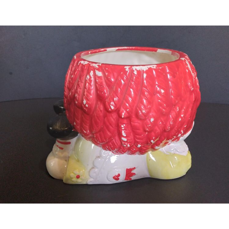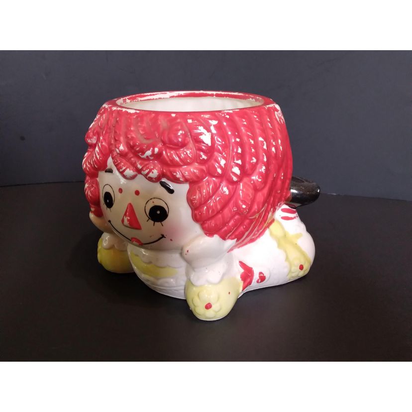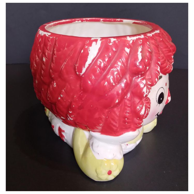 Vintage 1976 Rubens Raggedy Ann Ceramic Planter #4193 Hand Painted. Approx. 4 inches tall, 4 inches wide across the front and 5 inches long. No chips, cracks or crazing. Please note some paint loss. Please see photos. I am a careful and experienced shipper.