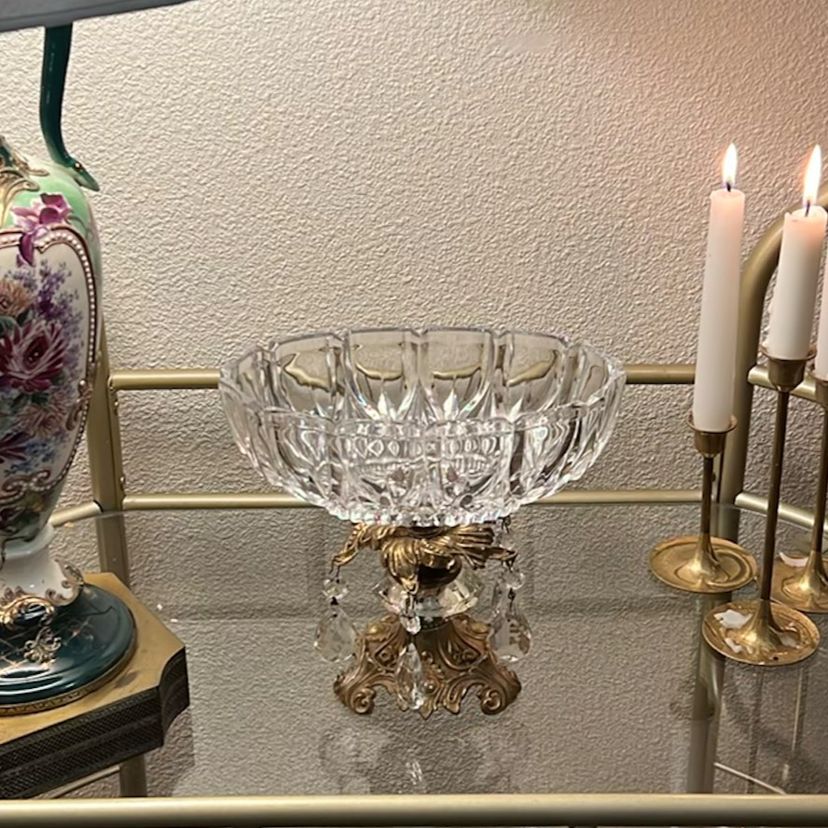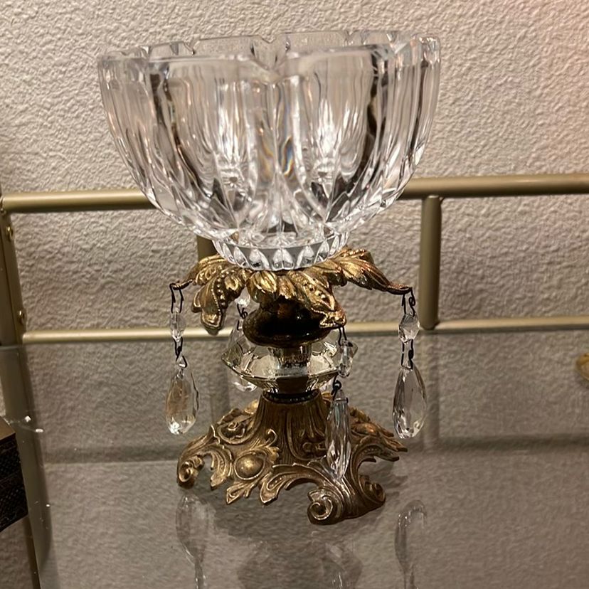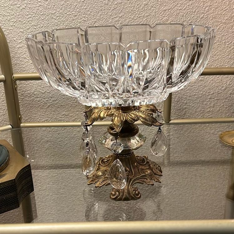 Very good condition, missing one hanging prism, no chips or cracks, tarnish consistent with age