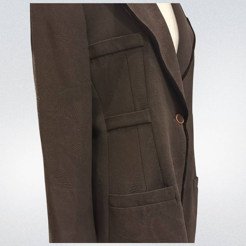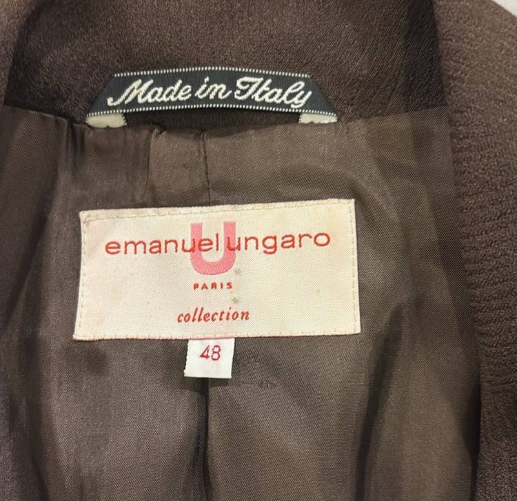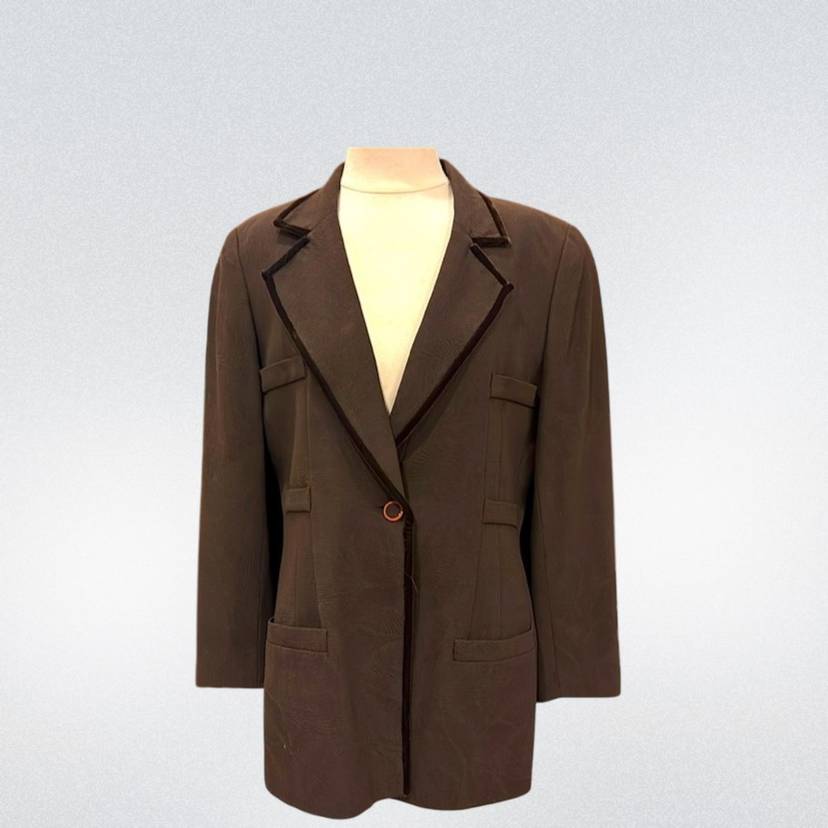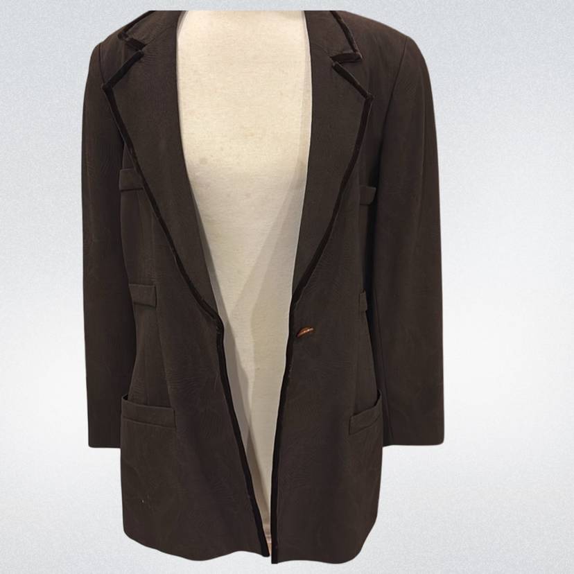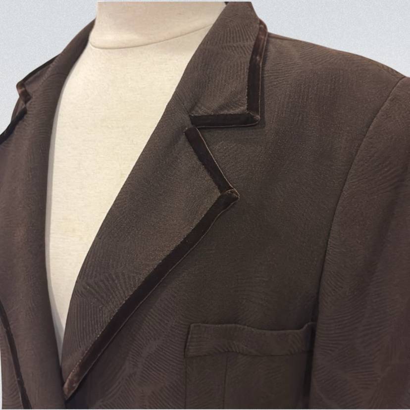 Vintage 1980s Ungaro Paris Collection Brown Print blazer with velvet trimming