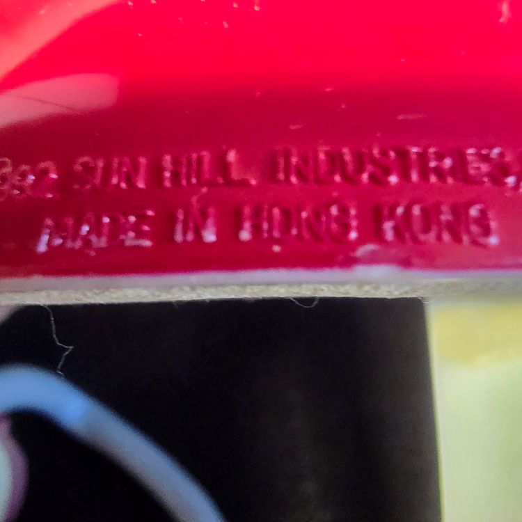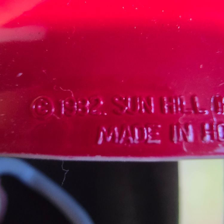 Made of durable molded plastic, marked ©1982 Sun Hill Industries, Made in Hong Kong